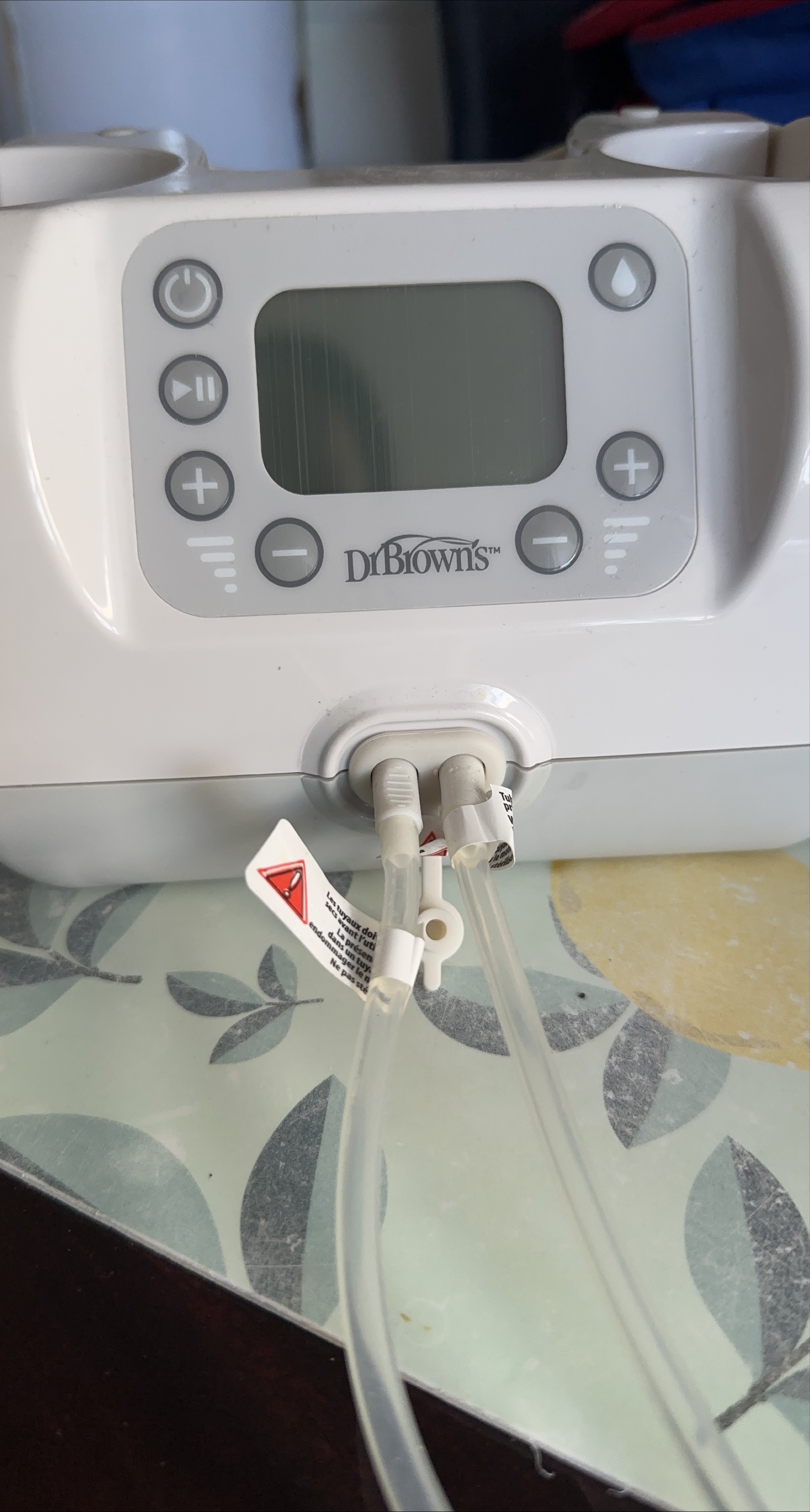 10Selling a Dr. Brown's breast pump. It has a digital display and buttons for power, play/pause, increase/decrease suction, and a button with a water droplet symbol. Please take a look at the pictures!Barely used.