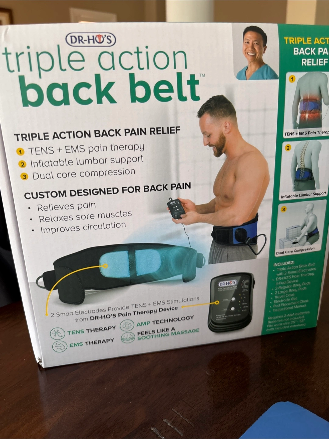 I'm selling a DR-HO'S Triple Action Back Belt! It provides triple action back pain relief with TENS + EMS pain therapy, inflatable lumbar support, and dual core compression. It's custom designed for back pain, relieving pain, relaxing sore muscles, and improving circulation. Included: - Triple Action Back Belt with 2 Smart Electrodes - DR-HO'S Pain Therapy 4-Pad Device - 2 Regular Body Pads - 2 Large Body Pads - Travel Case - Electrode Gel - Pad Placement Chart - Instructional Manual Fits waist size 25"-53" (with included extender)