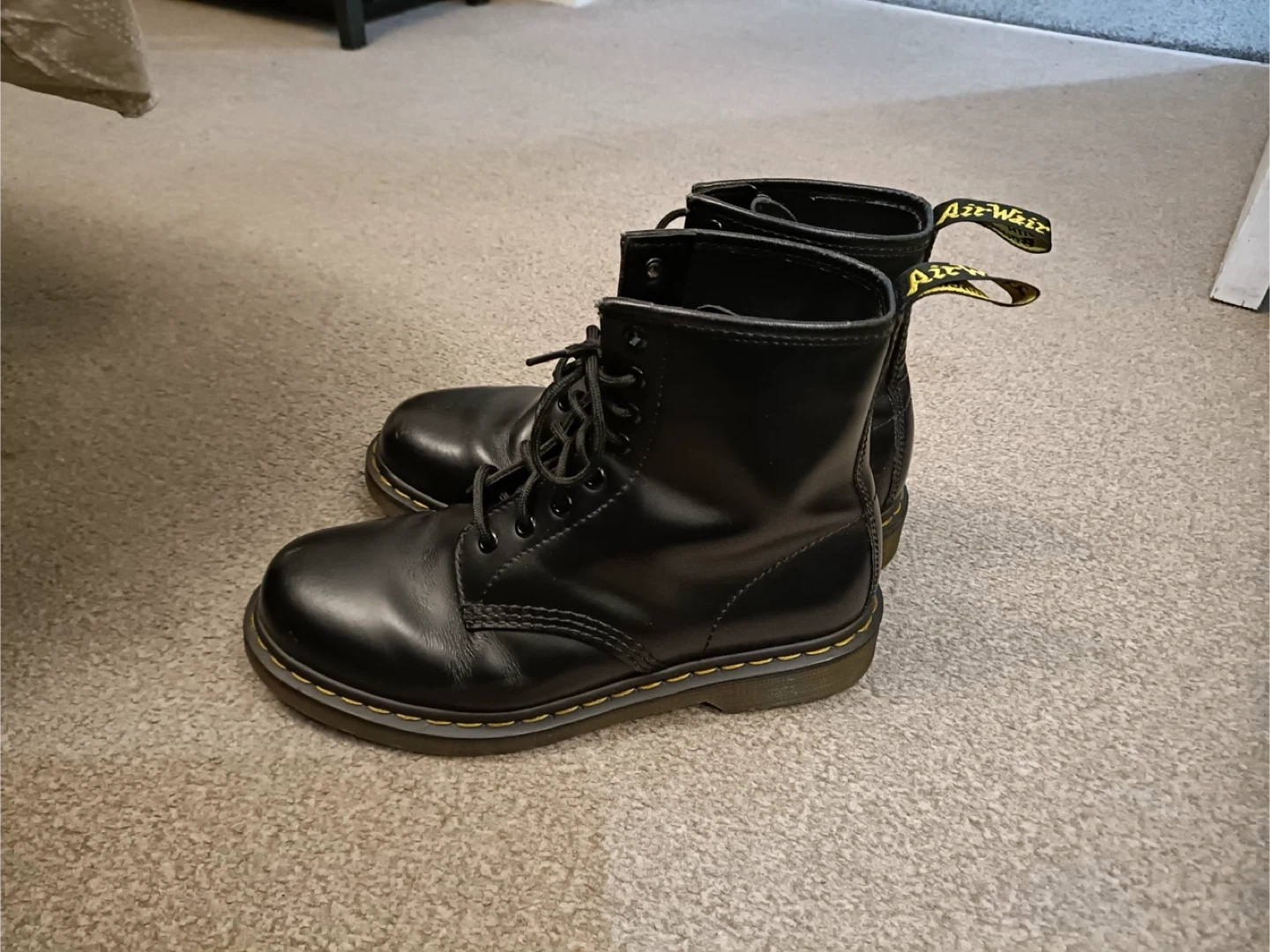 20Classic Dr. Martens 1460 boots in black leather! These are a timeless style and in great condition. The iconic AirWair cushioning makes them super comfy for everyday wear. A great addition to any wardrobe!