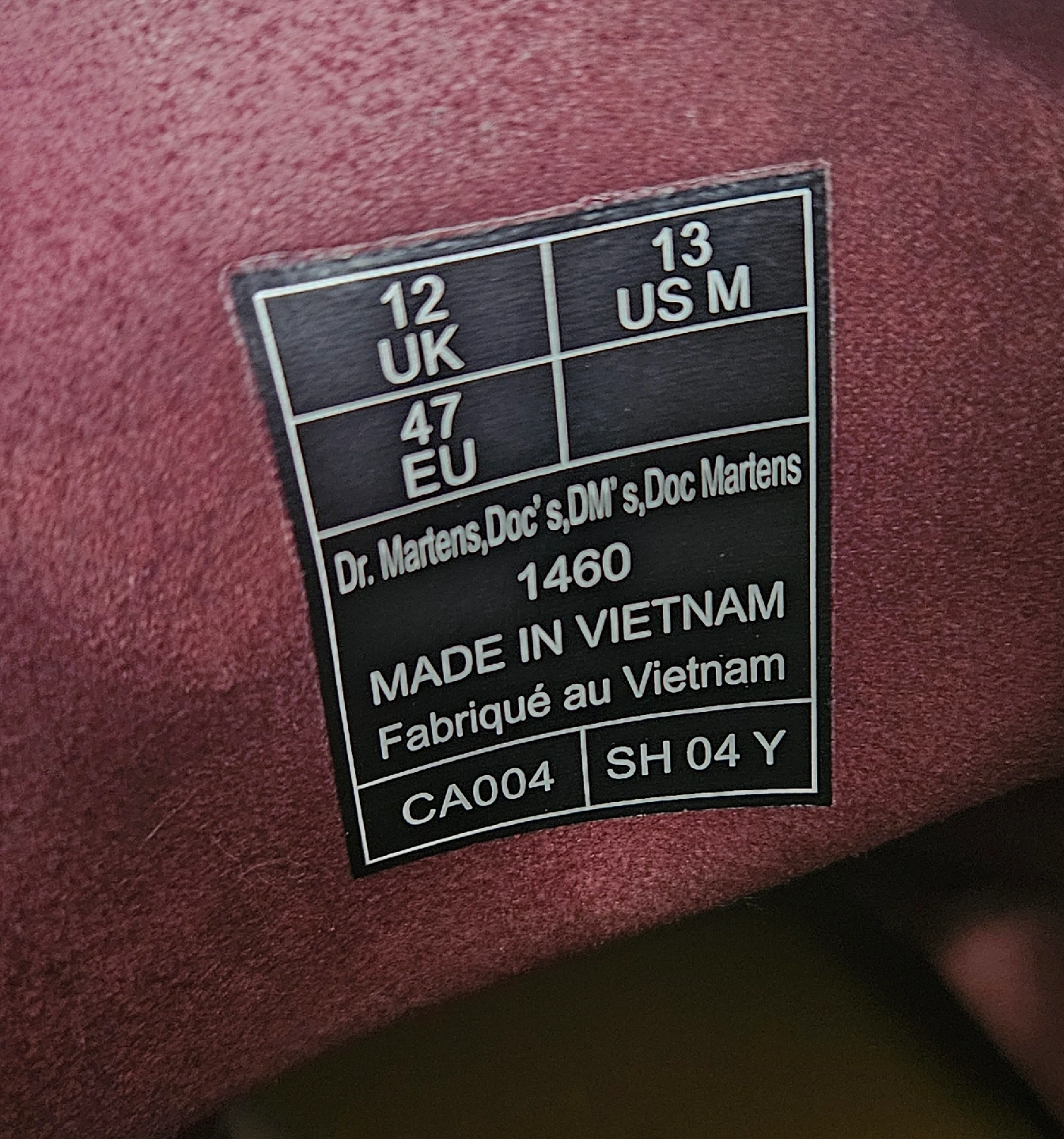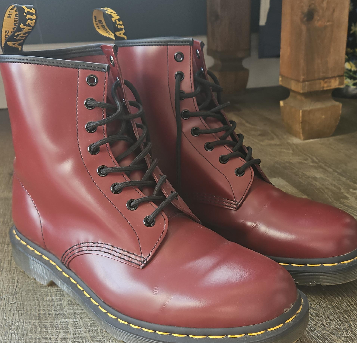 Selling a pair of Dr. Martens 1460 boots in cherry red color, size US 13M. Size does not fit so selling it