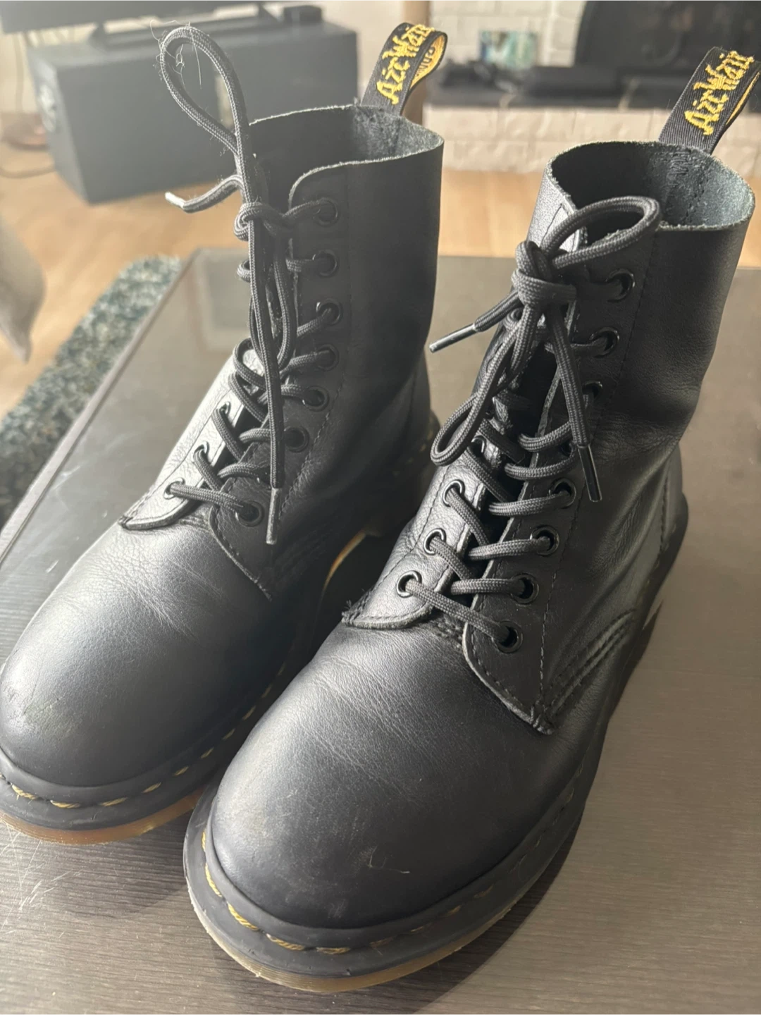 62Selling a pair of Dr. Martens 1460 Pascal boots in US size 7, EU38. They're in great condition. They feature the iconic Dr. Martens style and have more supple leather than many Doc Martin boots.