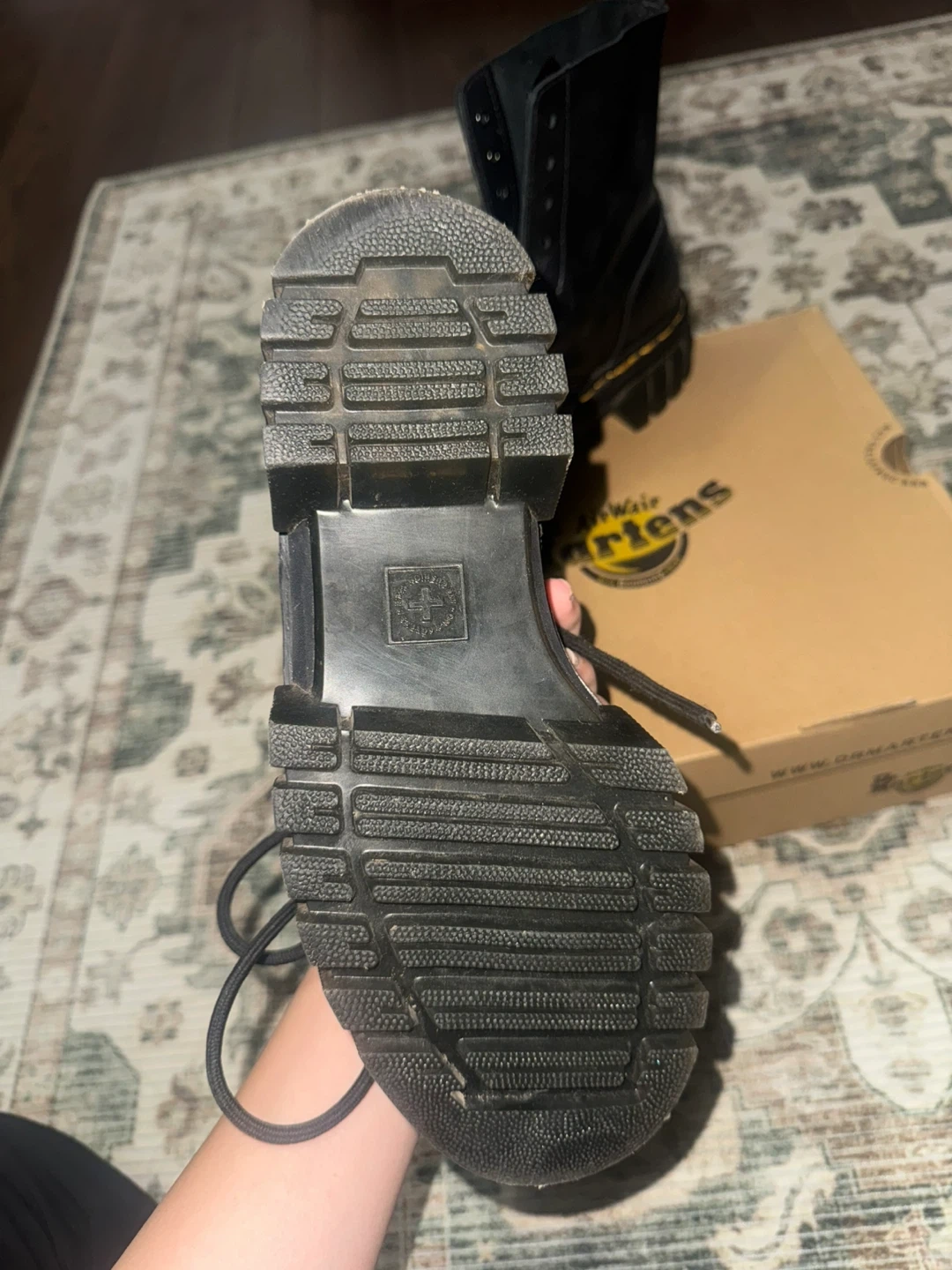 Selling a pair of Dr. Martens Audrick 8-Eye Boots in black. They're a US size 7 and come with the original box. These boots are a stylish and durable choice! Barely been worn — only twice :) Clean and barely used, like new as shown in pictures.