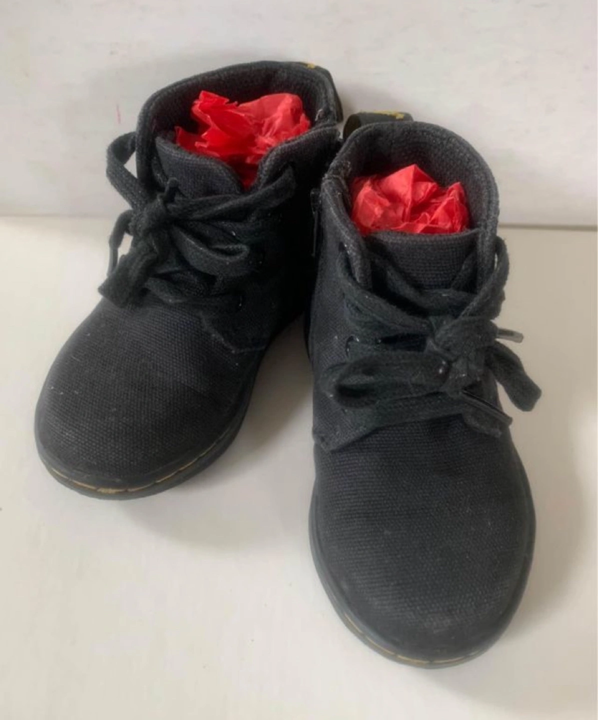 Dr. Martens Black canvas boots with laces and a side zipper. Size 5. Pick up at Eglinton Ave east at Bayview.