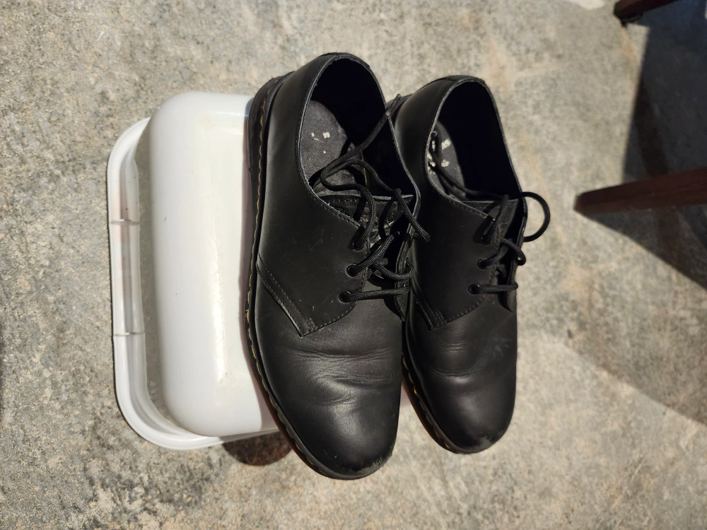Selling a pair of Dr. Martens shoes in black leather, size 10 US. They're in great condition and ready for a new home. Size