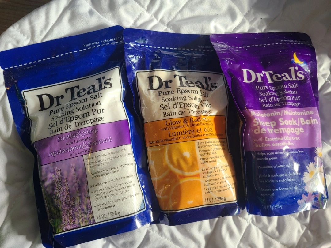3043 unopened bags for $5 Selling a set of three Dr Teal's Pure Epsom Salt Soaking Solutions