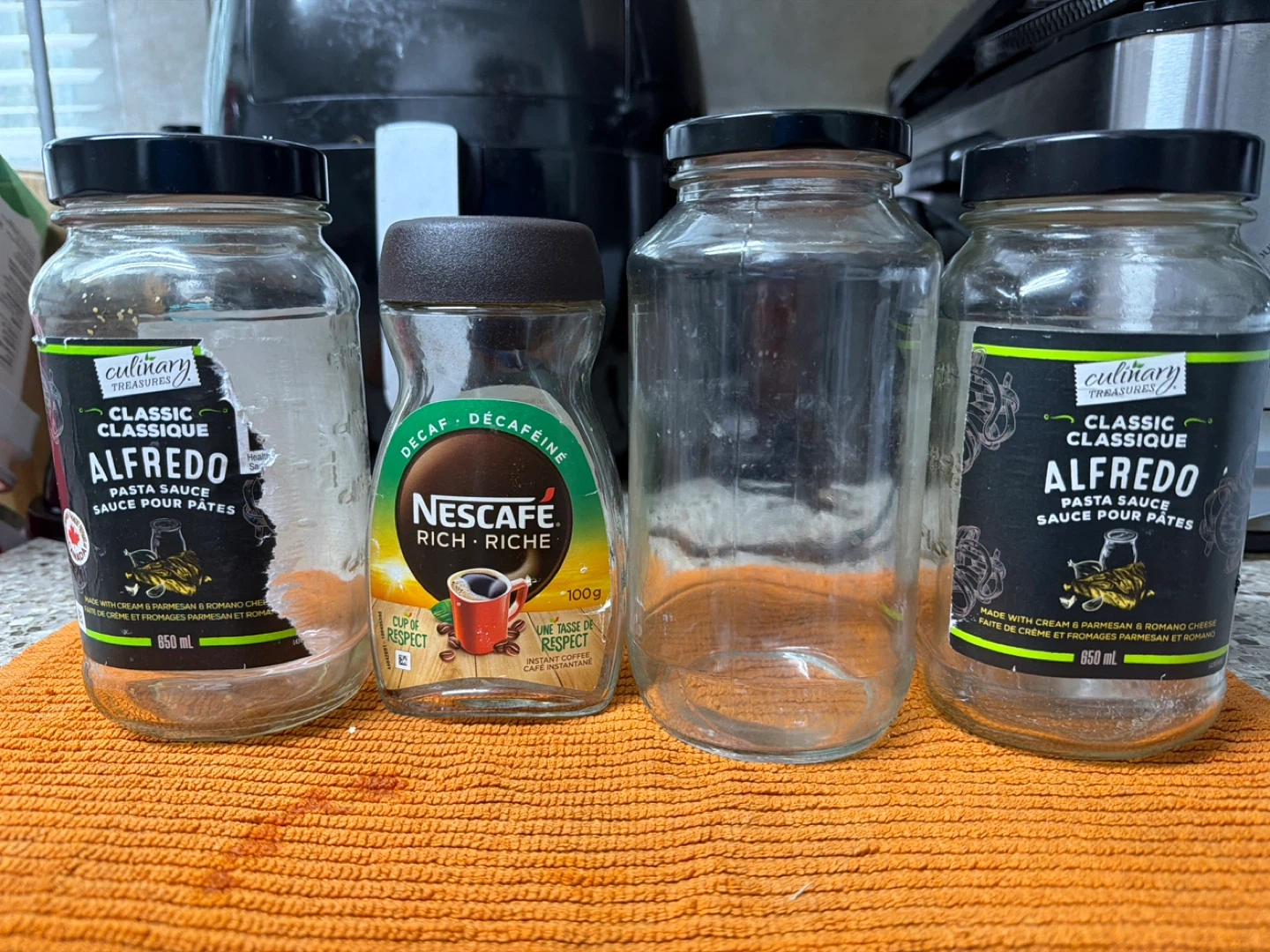 Includes a Nanak Dahi Indian Style Yogurt container and a Society brand yogurt jar. Also comes with a stack of empty plastic food storage containers with lids. Good for storing leftovers or organizing small items.