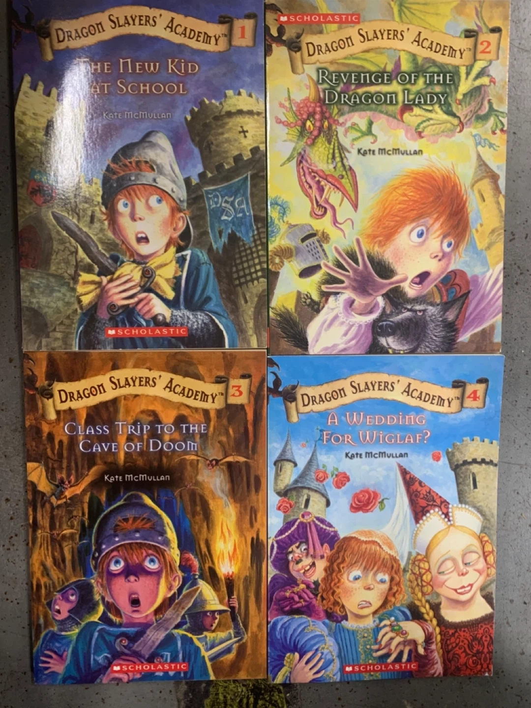 Set of the first 4 books in the hilarious and adventurous Dragon Slayers’ Academy series: 1. The New Kid at School 2. Revenge of the Dragon Lady 3. Class Trip to the Cave of Doom 4. A Wedding for Wiglaf? ✨ Perfect for young readers who love fantasy, dragons, and funny adventures. Great starter set for the series! 📖 Condition: Gently used, all books in good shape (see photos). 💲 Price: $12 for the set (or $4 each) 📍 Pickup in Brampton.