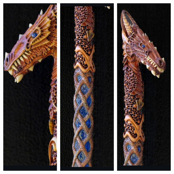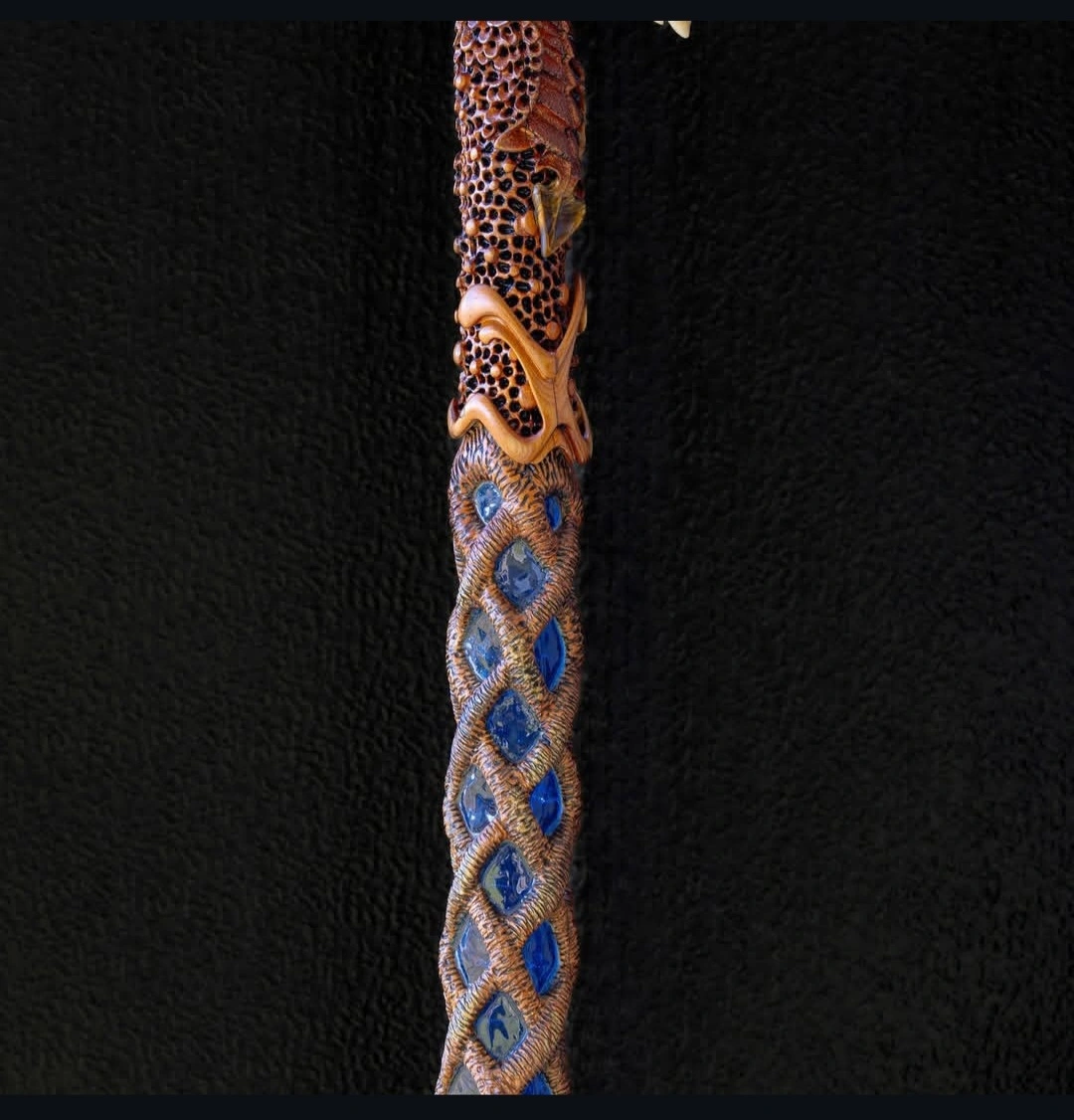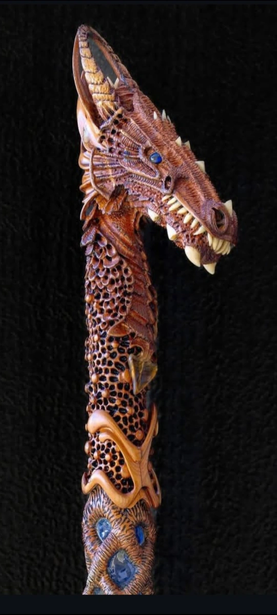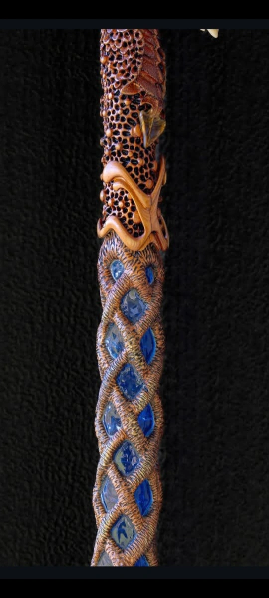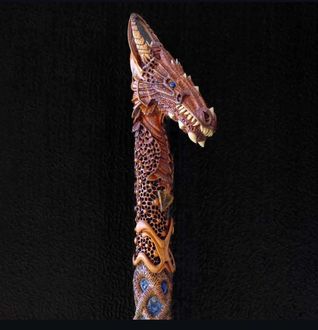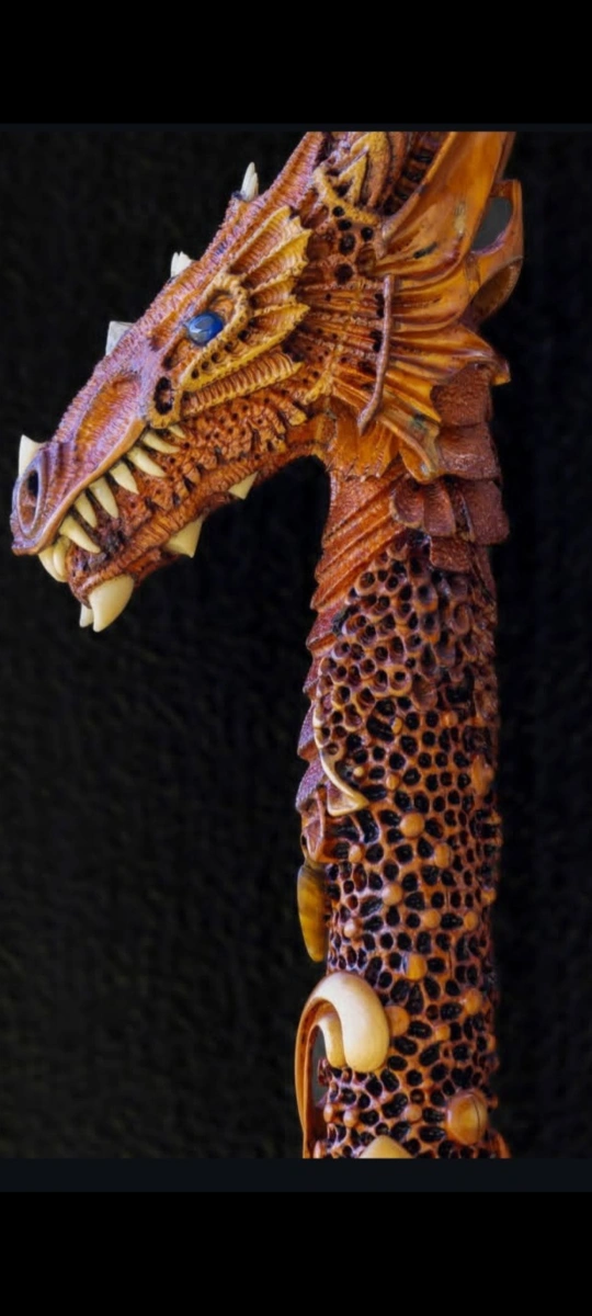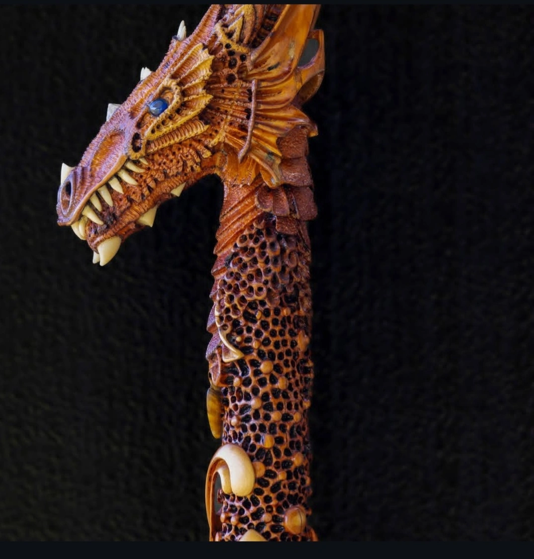 15Selling a unique dragon head staff. The intricate details and design make it a standout piece. The handle is carved in the shape of a dragon's head, with detailed scales and features. The shaft is glow epoxy resin encased in a woven pattern. It's a beautiful piece of art! Many more features to list, for more information please reach out to Ravencarve8@gmail.com or Instagram @ravencarving8 to see more works. I will put you in touch with the artist.