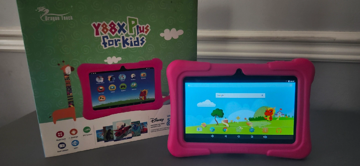 Selling a Dragon Touch Y88X Plus tablet designed for kids! It comes with a pink protective case. The original box is included. Perfect for keeping little ones entertained with fun apps and games
