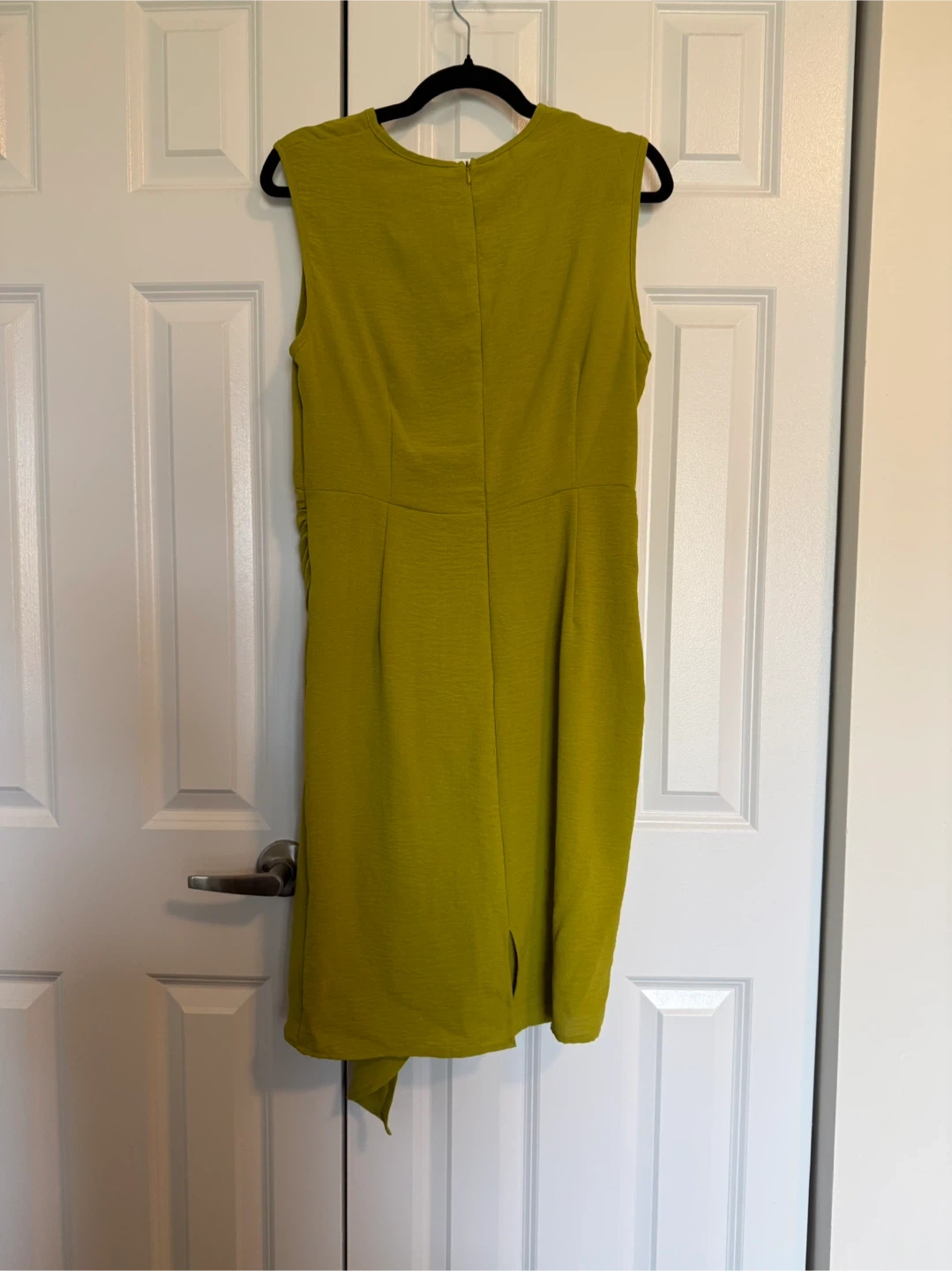 Mustard Green Pleated Dress with Pleats- Size Medium