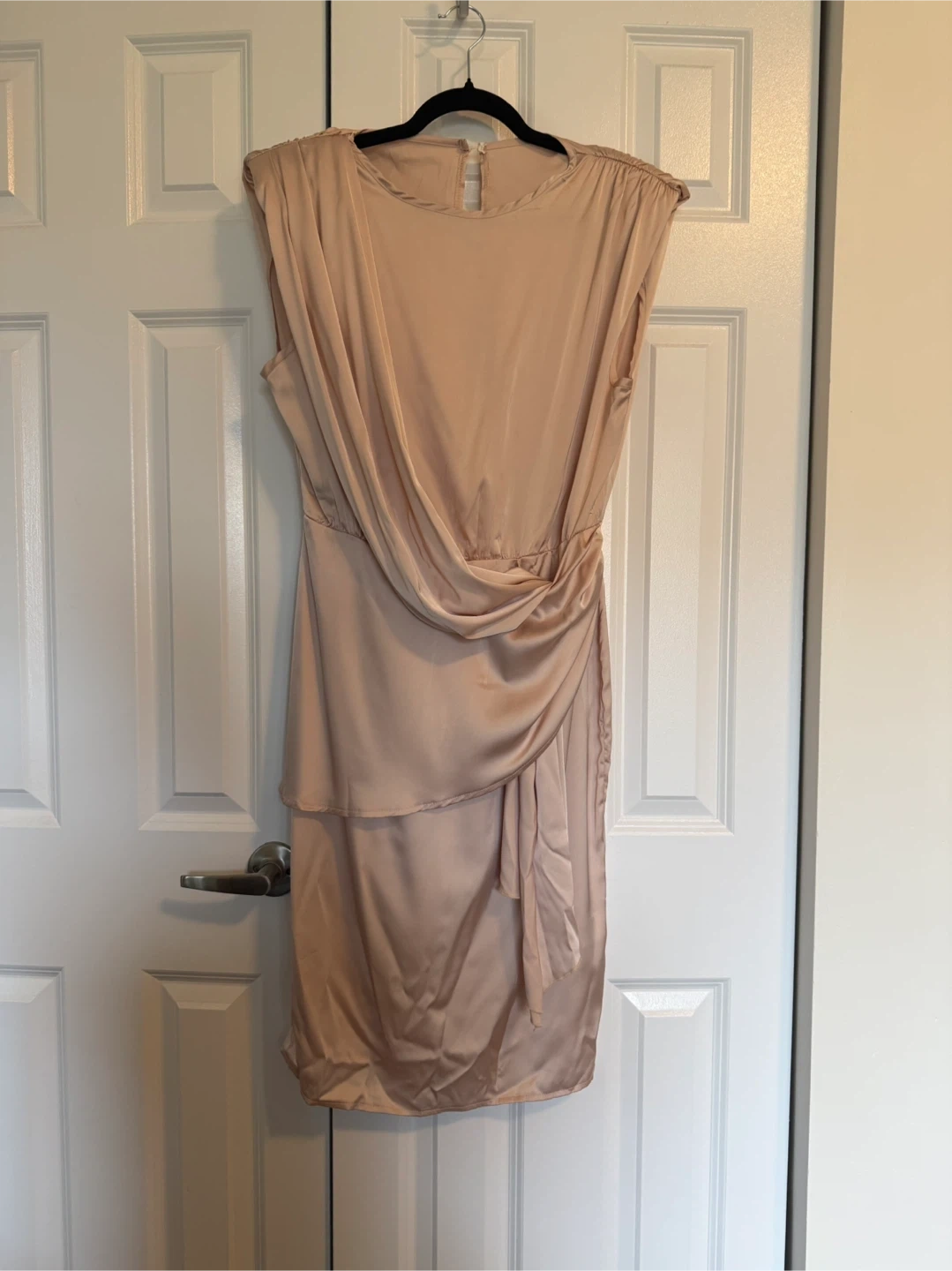 Champagne Satin Dress With Pleats, High-Low Hem And Back Slit- Size Medium