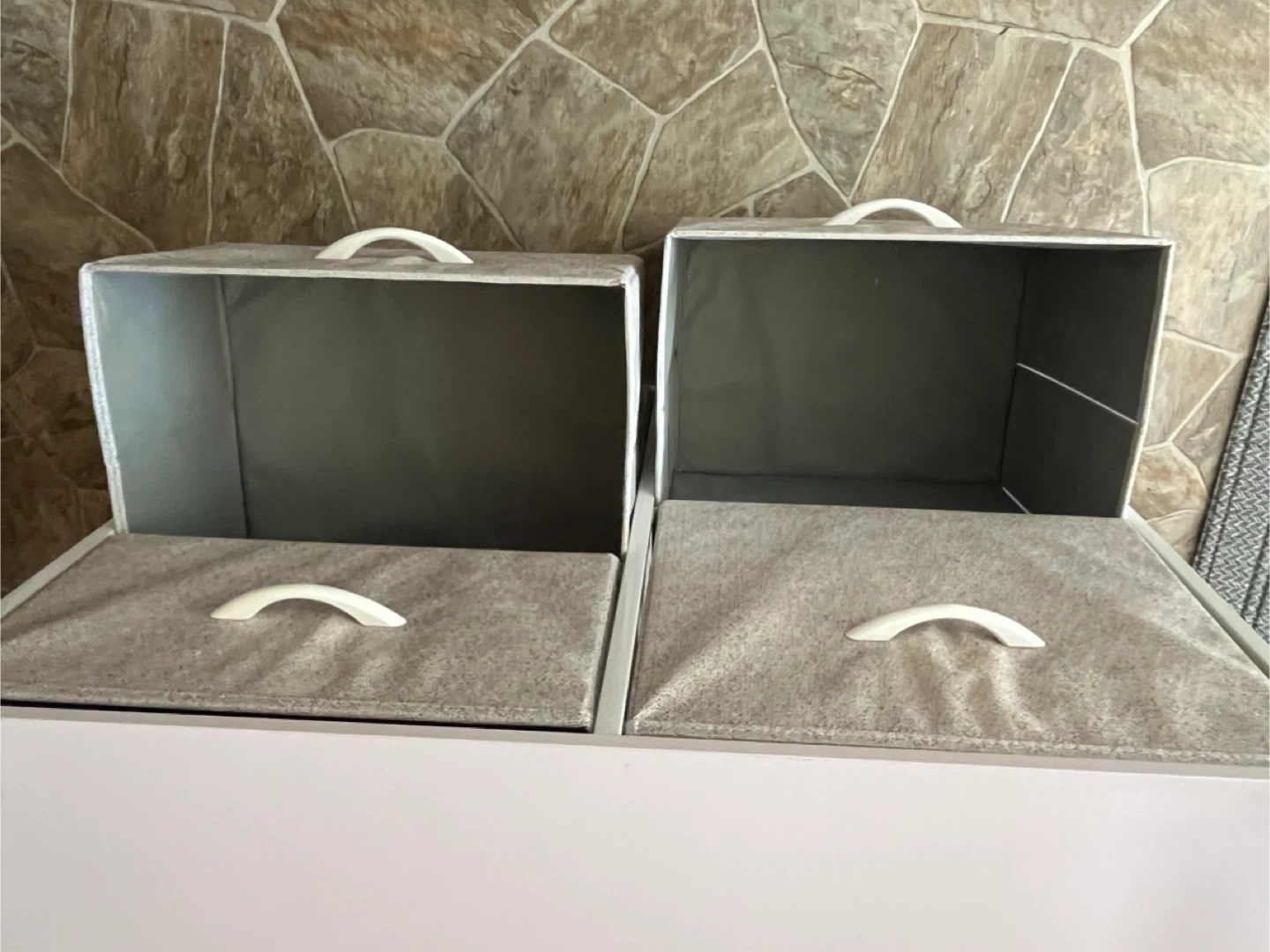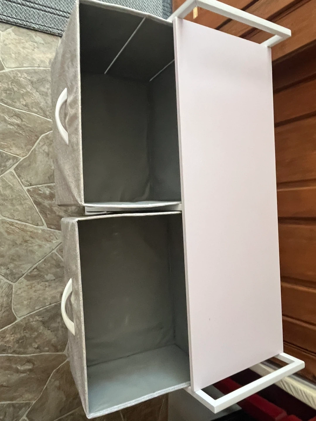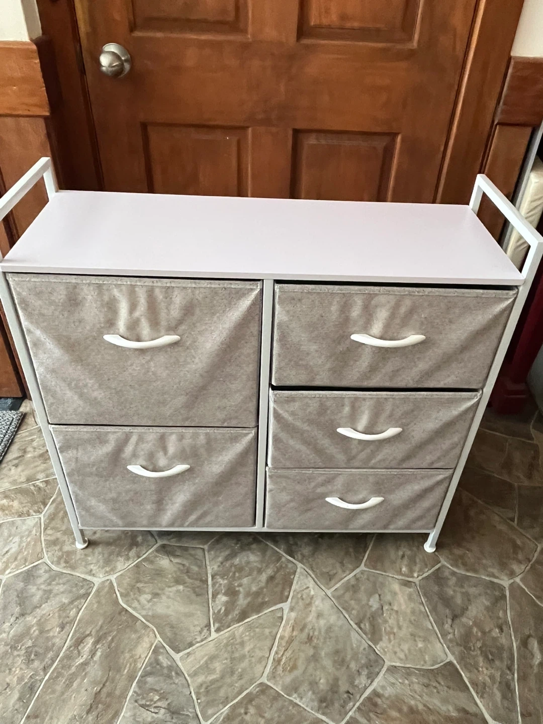 92This like new dresser features a sturdy frame with removable fabric drawers. It's perfect for organizing clothes, toys, or accessories. The neutral colour (light mauve) will fit in any space!