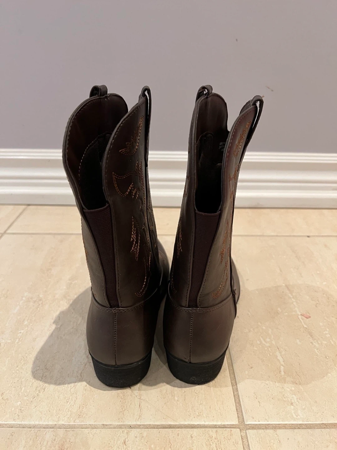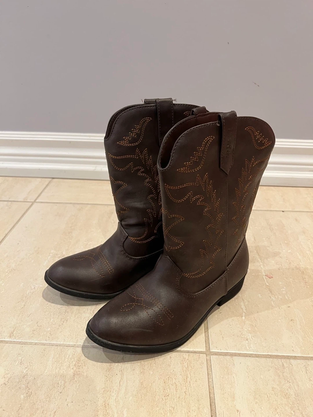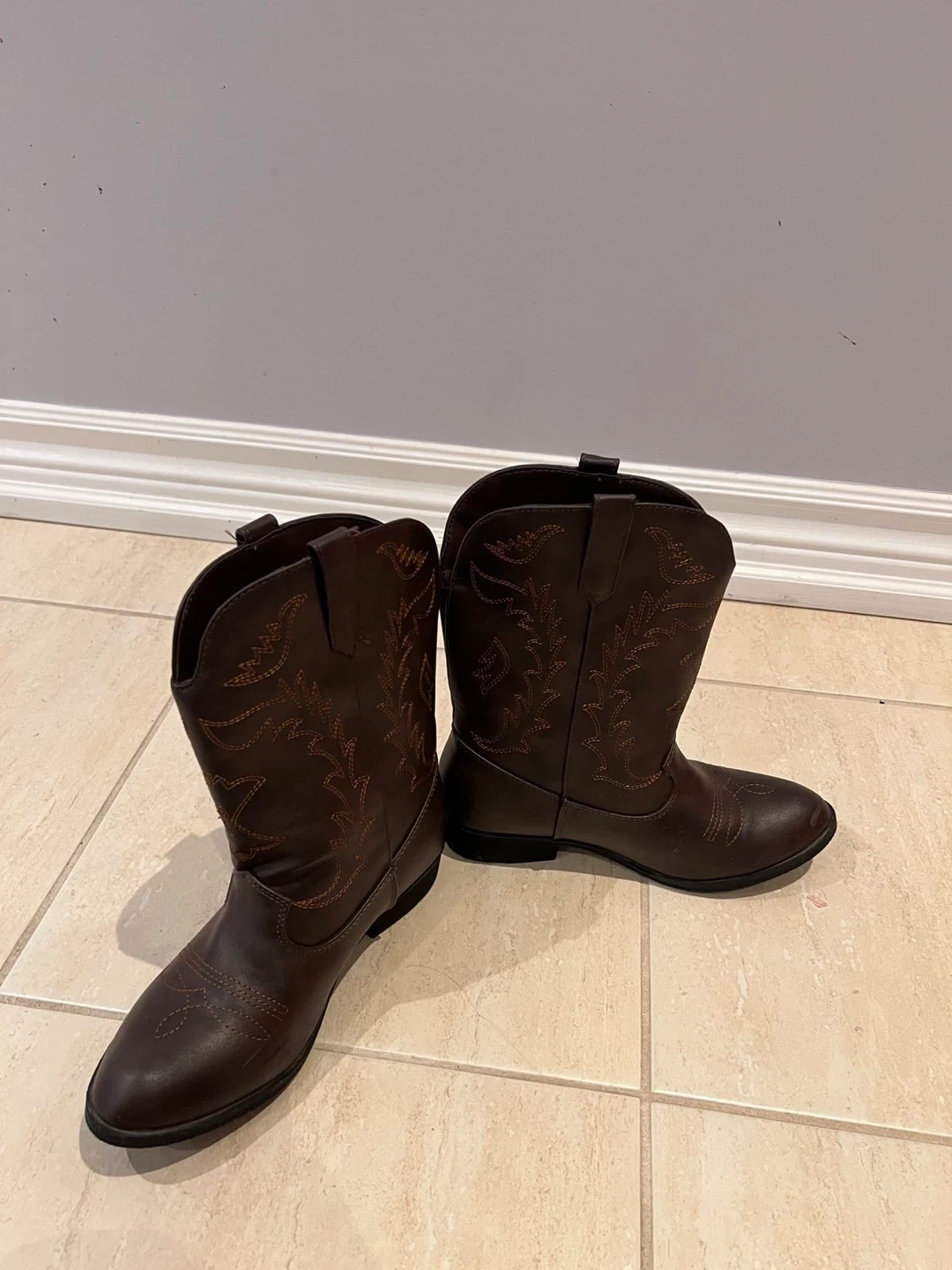 171Selling a pair of Dream Pairs cowboy boots in a lovely brown colour! They are a size 3. These boots are perfect for adding a bit of western flair to your wardrobe