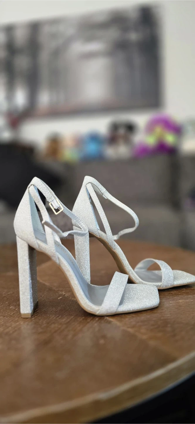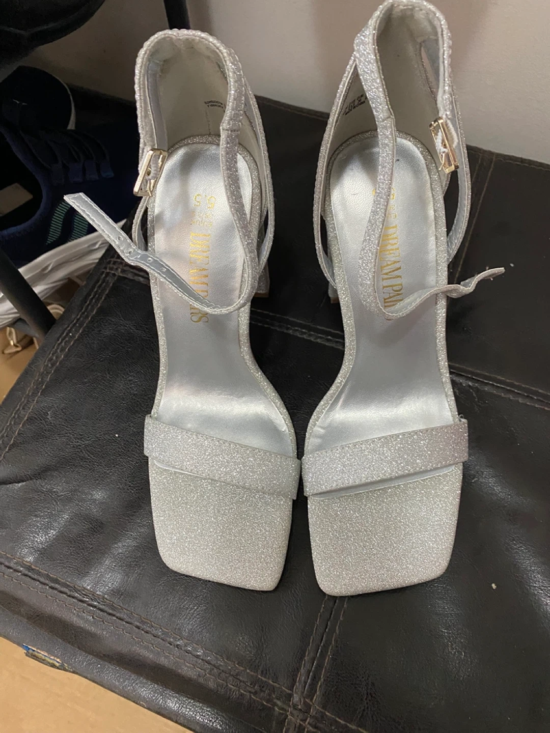 Selling a pair of Dream Pairs heels in size 5.5. They're a sparkly silver colour and have a block heel. Perfect for a night out!