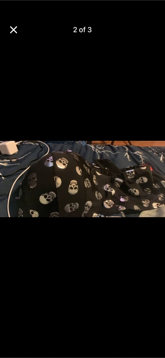 Selling a Dream Wire-Free Bra in a fun polka dot skull black pattern. It's a size 46D. Perfect for everyday comfort and support!