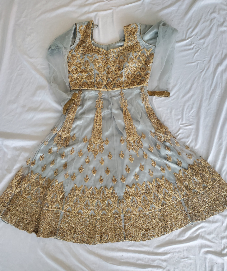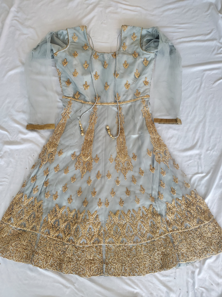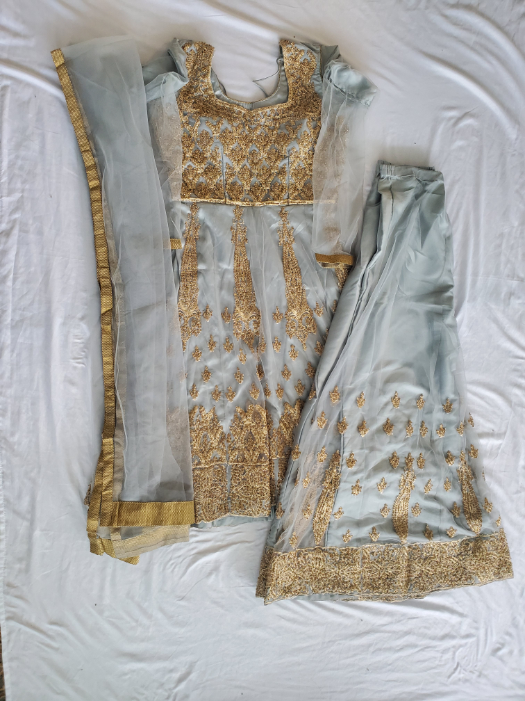 23Brand new and inspired by Pakistani and Afghani styles, this outfit set in a shade close to gray is ideal for weddings and parties. It features a medium-sized top paired with wide trousers, combining traditional charm with modern comfort. Perfect for making a stylish statement at any special occasion.