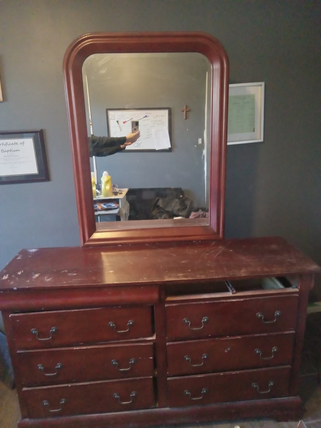 70Dresser drawer with mirror. Redwood color