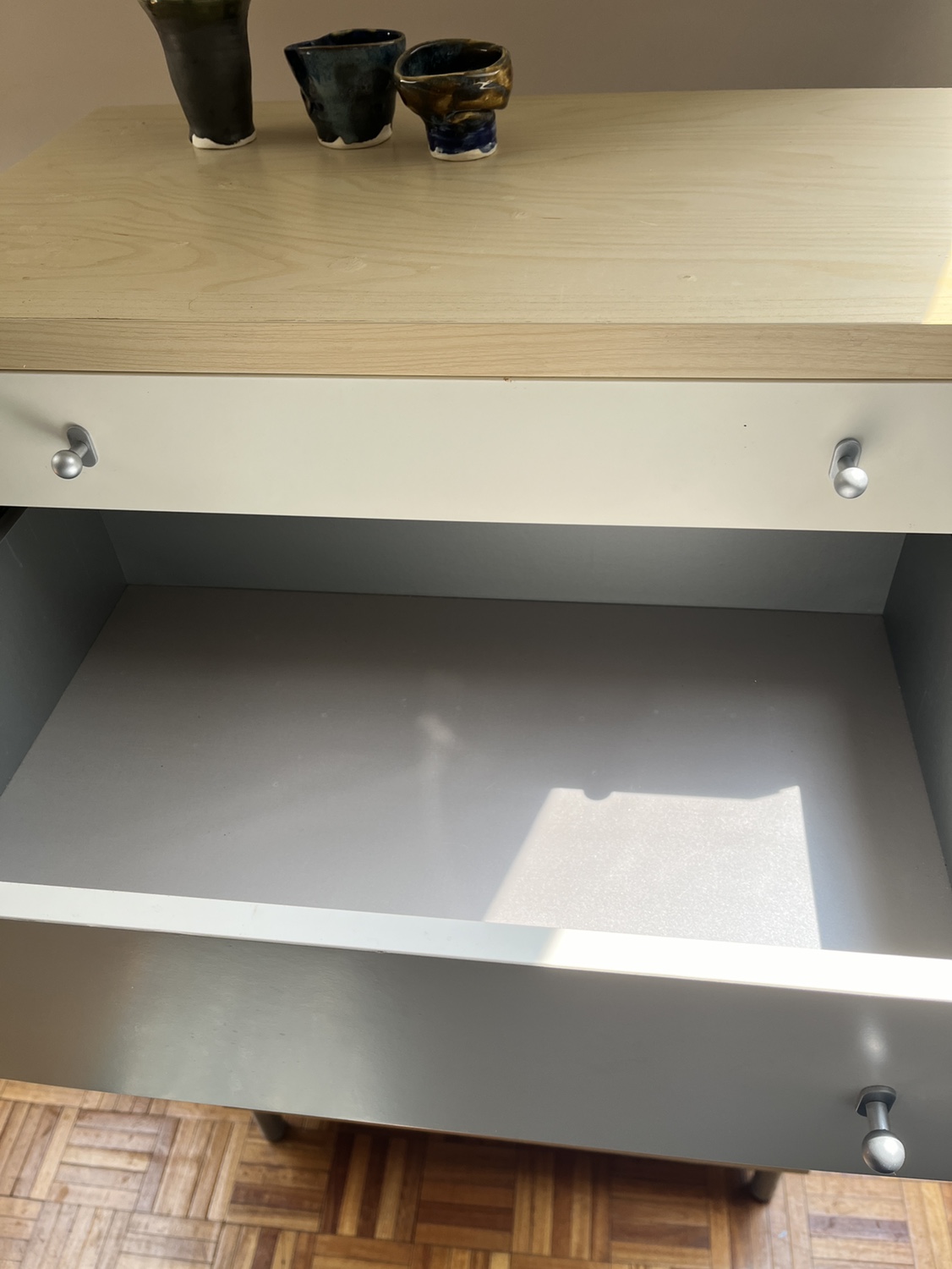 IKEA Kleppstad Queen Bed Frame - White/Vissle Beige