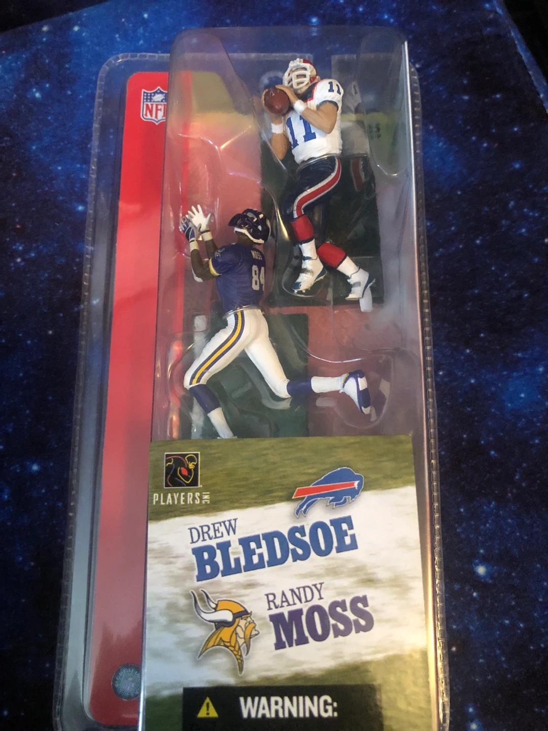 Selling a collectible set of NFL figures featuring Drew Bledsoe and Randy Moss! These figures are still sealed in their original packaging. A great addition for any football fan or collector!