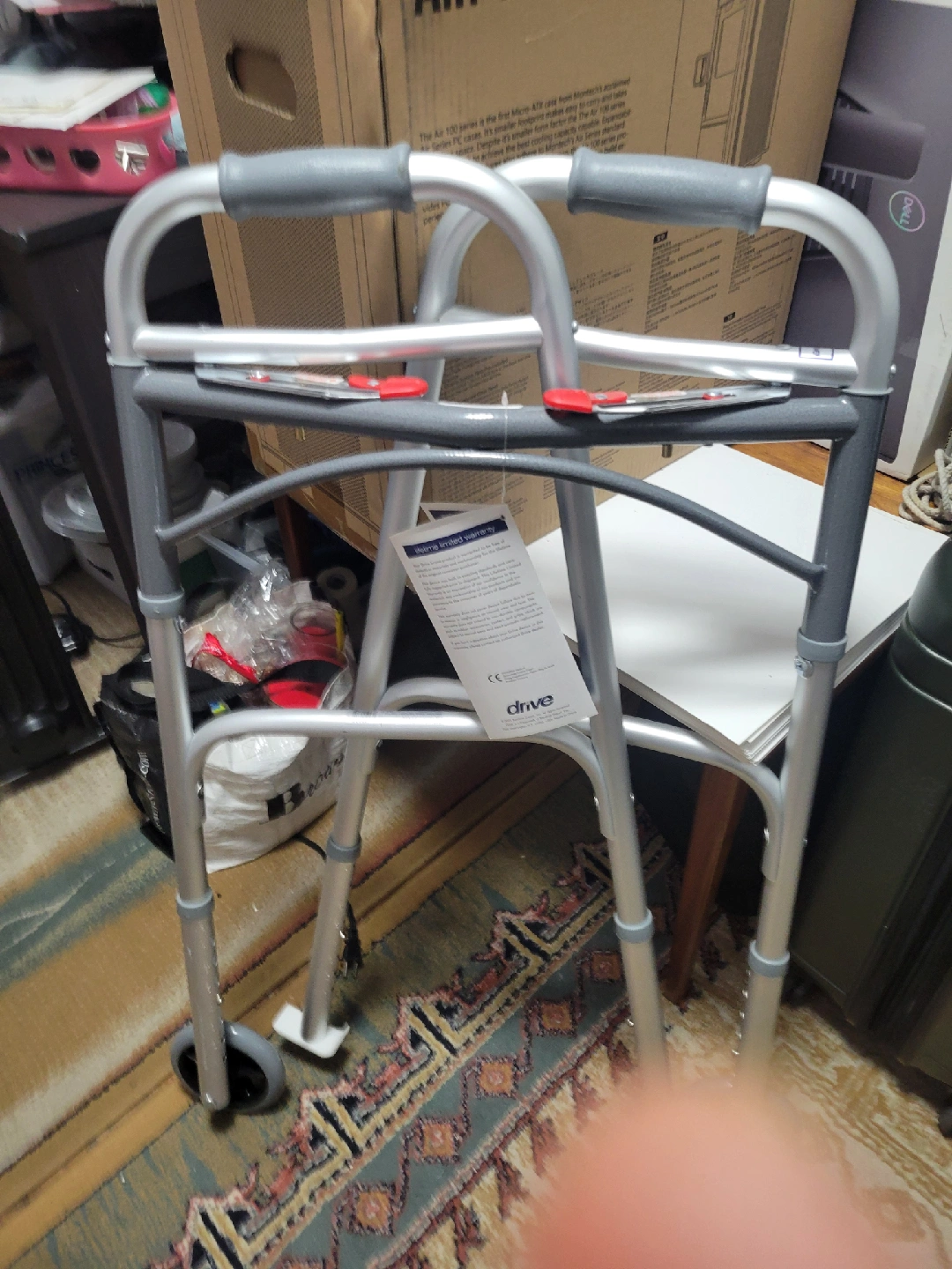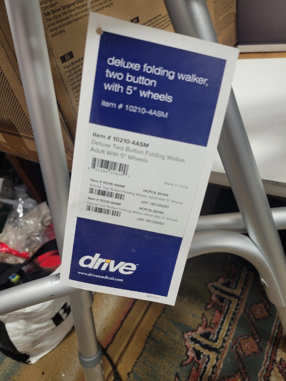 Selling a Drive Deluxe Two Button Folding Walker with 5" wheels. It's an adult size walker and in great condition! This walker is lightweight and portable for easy use