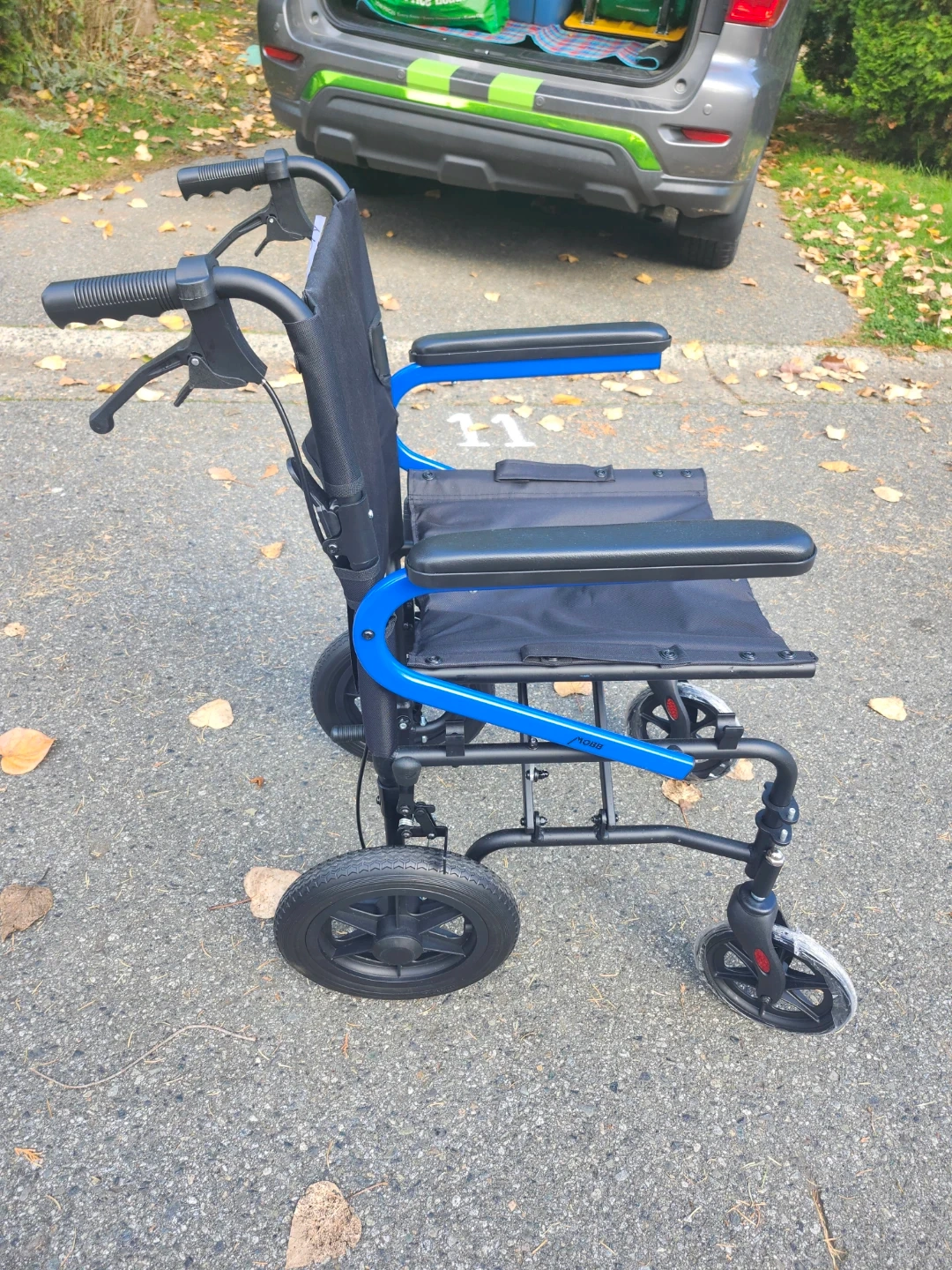 10Selling a Drive Health Care wheelchair in black and blue! It's in great condition and ready to use. Perfect for anyone needing a reliable and comfortable mobility aid. Foldable and for travel. Meet in white rock or delivery for $5 extra in Surrey or Langley.
