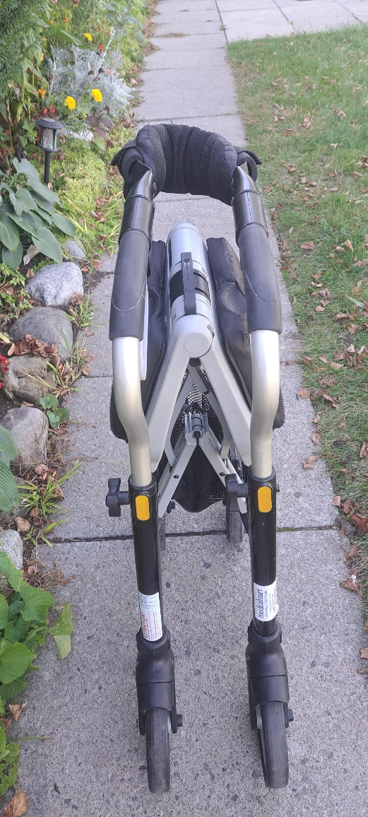 Rollator walker with seat, basket and padded handles. Folds for storage.hand brakes for safety padded back rest