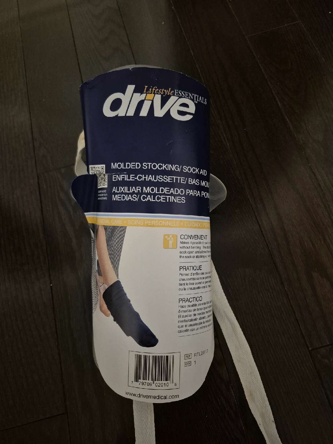 Selling a Drive Medical molded stocking/sock aid. It's designed to help easily put on socks and stockings. Perfect for anyone with mobility issues or difficulty bending over. Brand new, never been used.