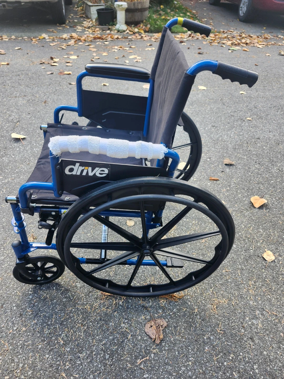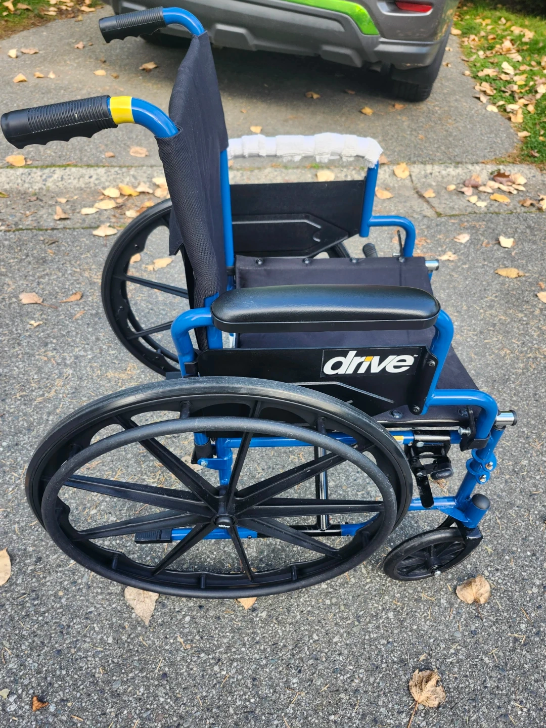 10Selling a Drive wheelchair with a blue frame. It looks to be in good condition and ready to use. Perfect for someone in need of a reliable and sturdy wheelchair. It's foldable and for travel. Meet in white rock or we can deliver for $5 extra in Surrey or Langley.