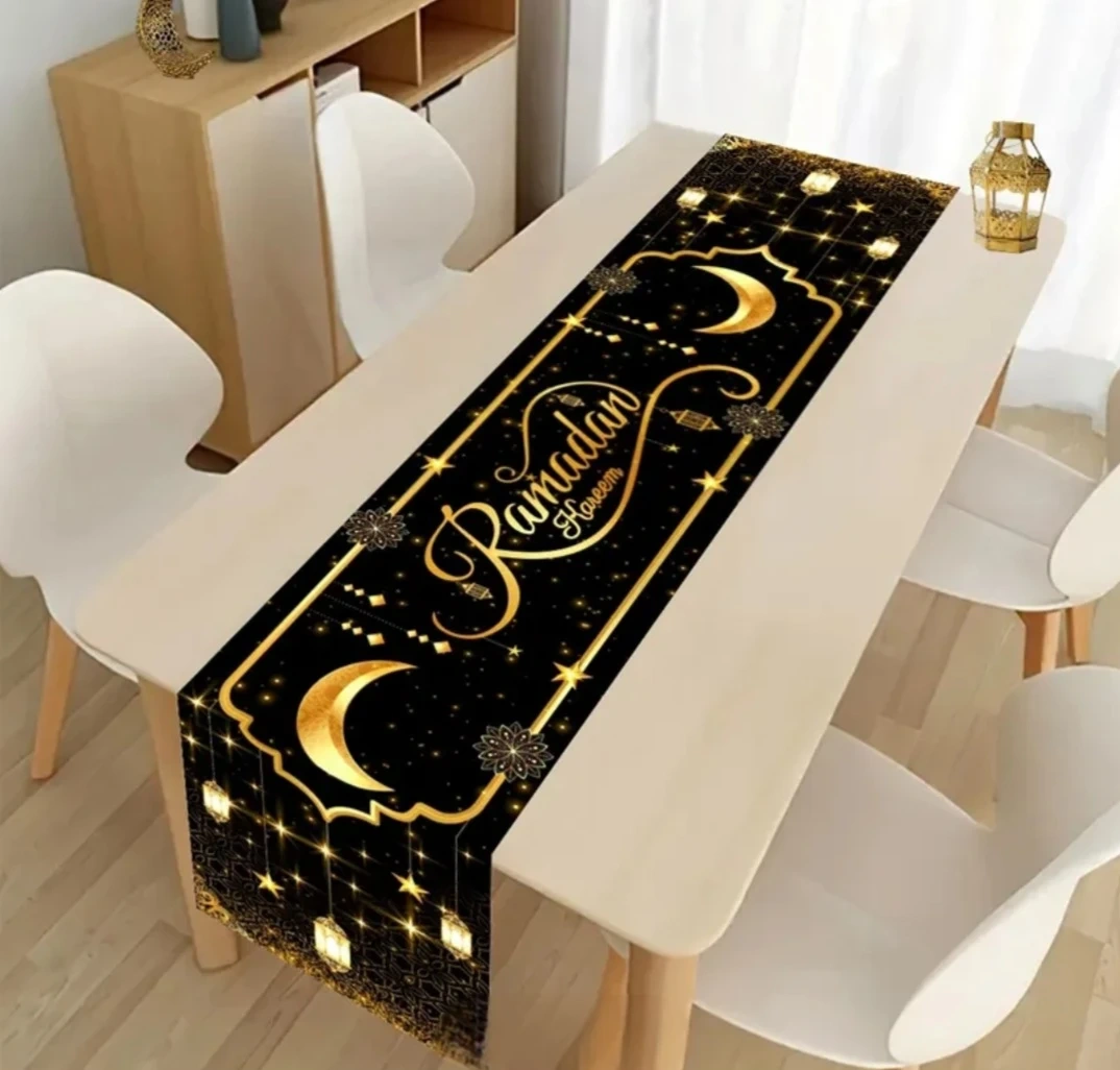 Adds festive flair to your dining space with this Ramadan Kareem table runner. Polyester material. Size is 180cm/70.87 inches long and 35cm/13.78 inches wide.