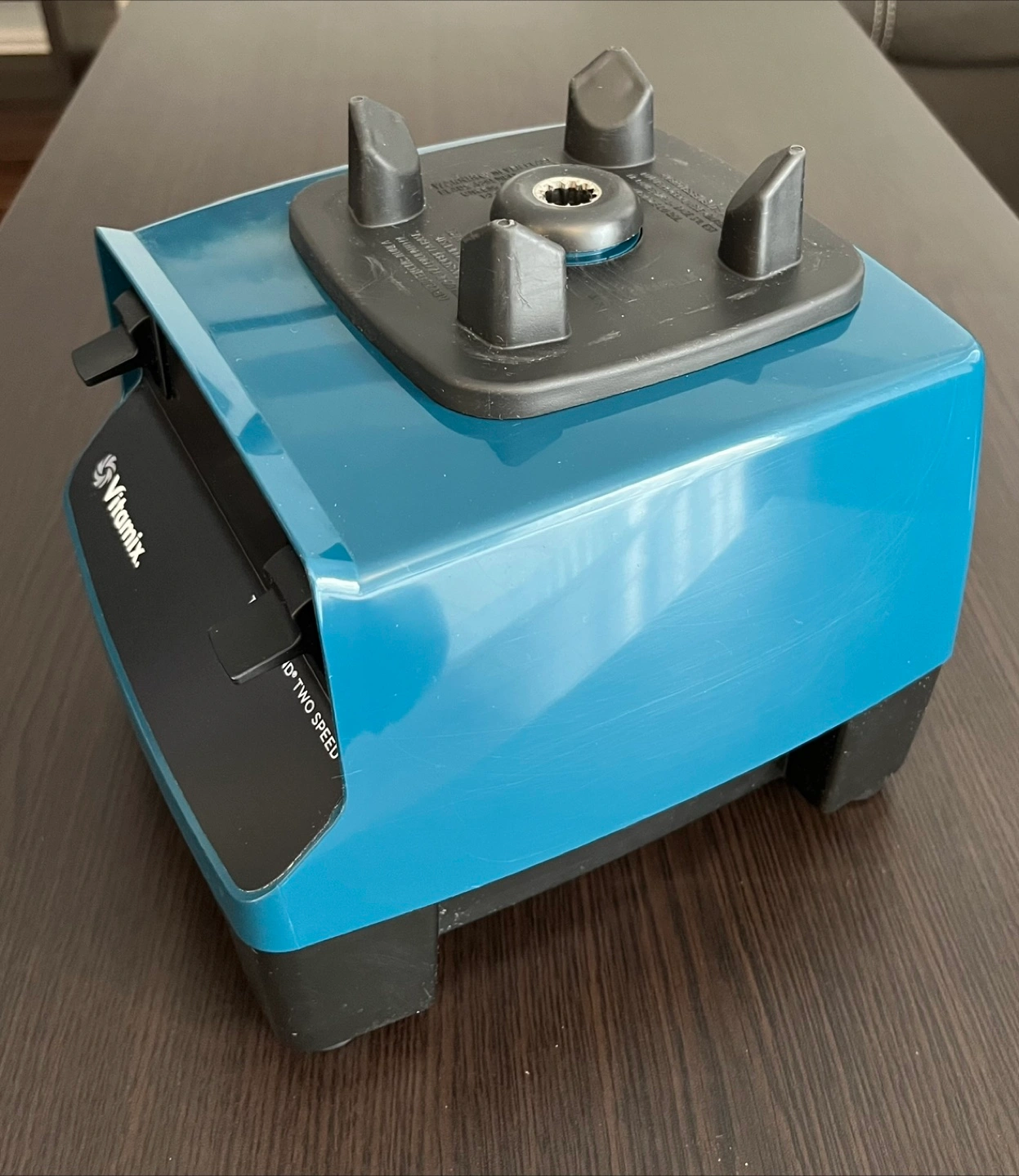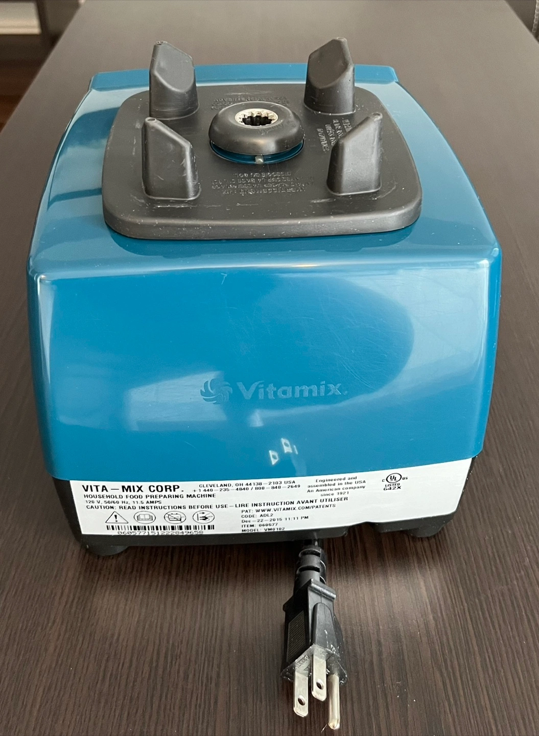 Vitamix Turboblend. Teal colour. Two-speed. Includes container, lid, tamper and box. Pre-owned. Still works well. No issues.