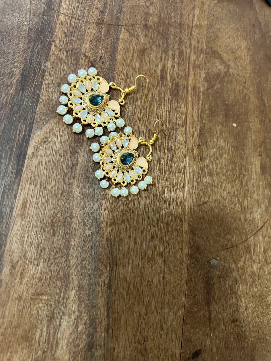 143Boho gold and pearl costume jewellery. Gold plated. I’ve had these for years and they’ve never tarnished or turned colour. Worn once for an event.