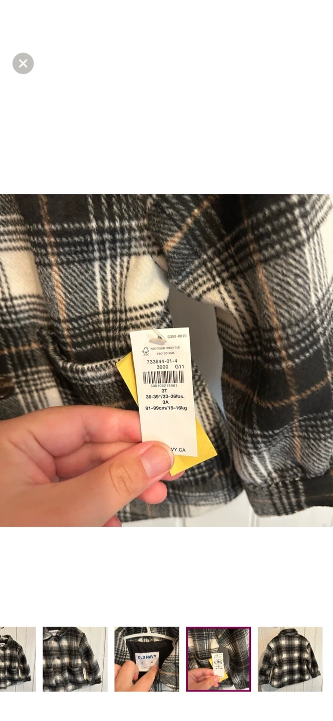 Old navy brand. Button up felt Shacket. Black & tan plaid. Size 3t. Brand new with tags