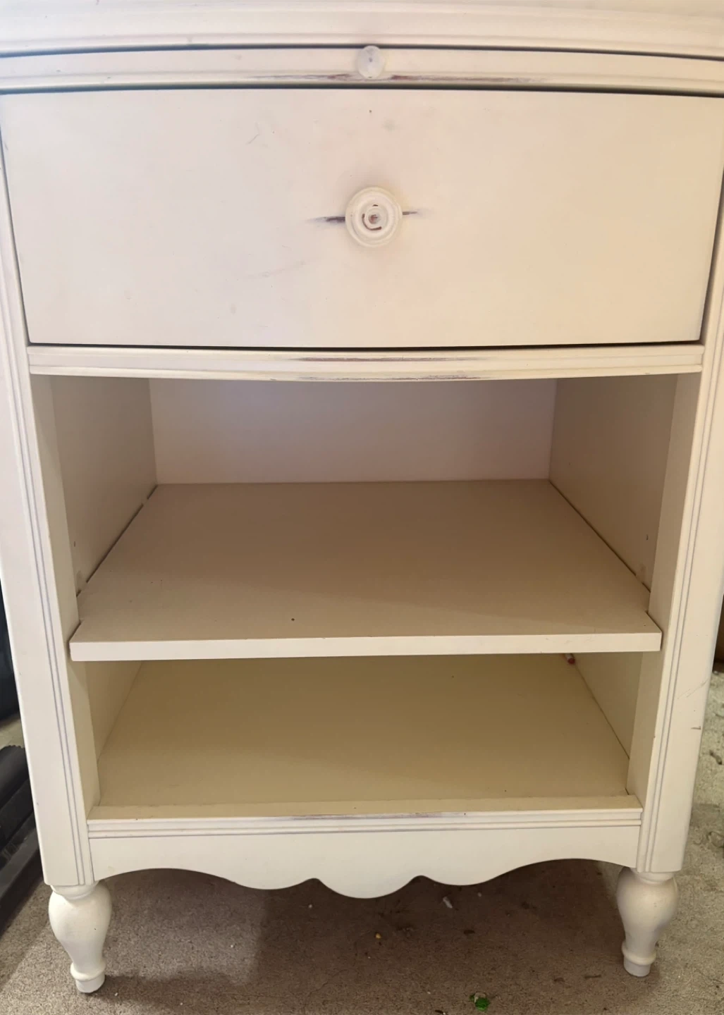 *****I am Including a nightstand that I bought seperatley later. Not sure who made it. . The nightstand may need a coat of white paint as the color is faded and doesn’t match to the white of the bed, but still worked for us . Night stand has a nice pull out drawer for (drawing ( like my daughter used it for) or to place a plate or cup on if needed… Please let me know if you’d like any other photos .