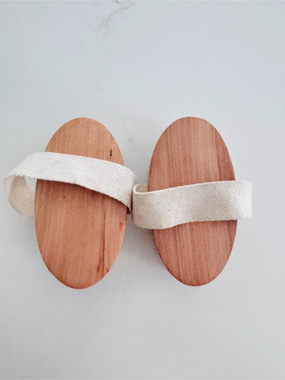 Set of two dry brushes for skin exfoliation and improved circulation They have a comfortable hand strap for easy grip and control Perfect for incorporating into your skincare routine
