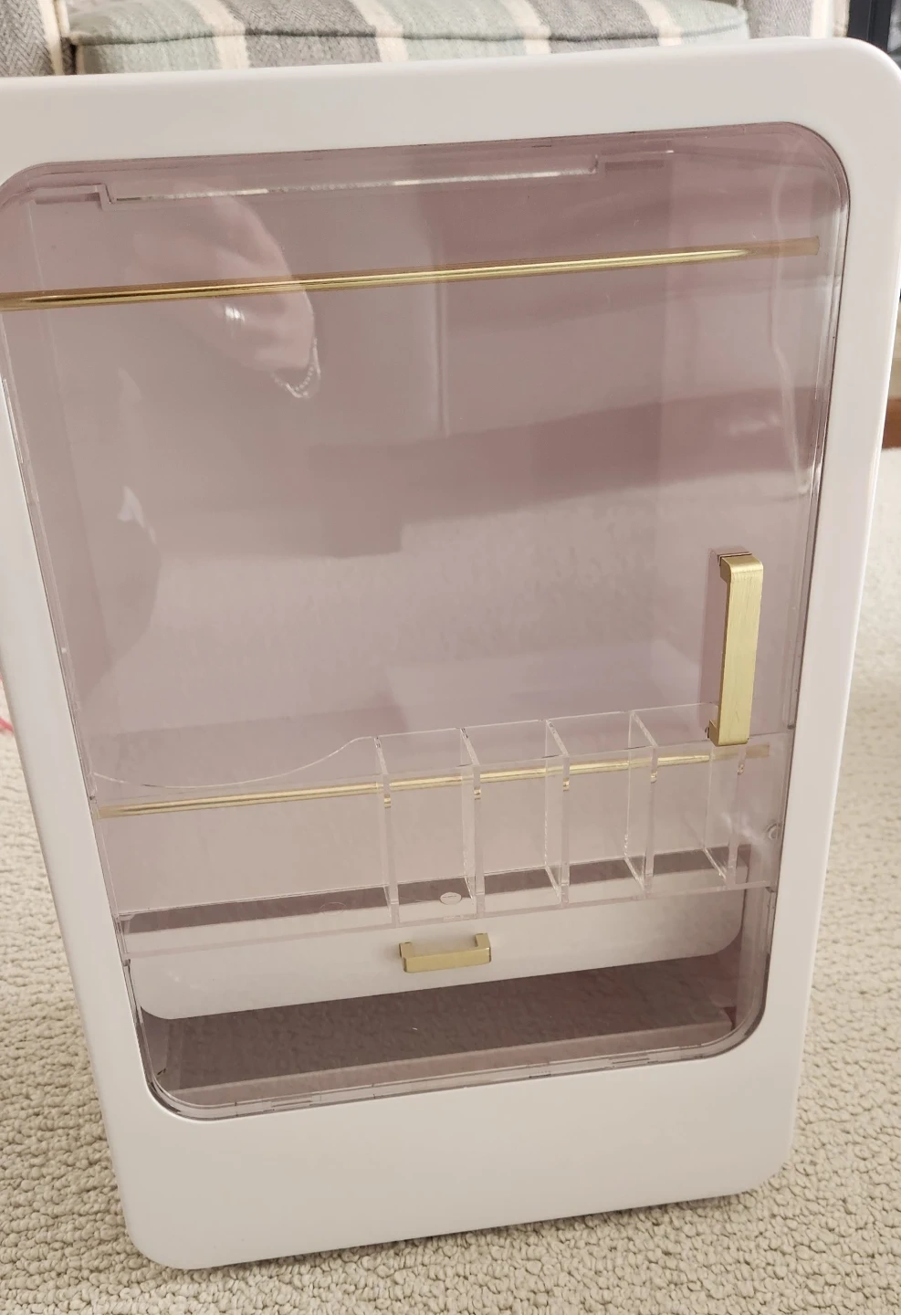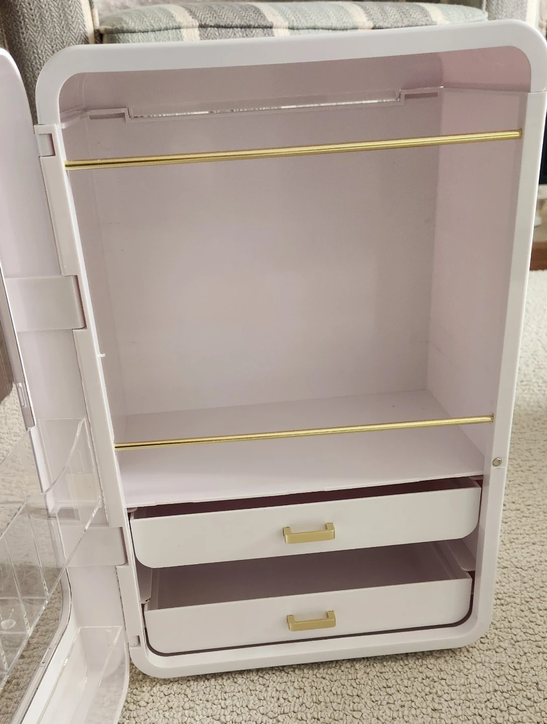 This Thinkspace Pro Beauty Cabinet is designed to store your cosmetics and skincare. It features multiple drawers and compartments for organization. Fits full-size products.
