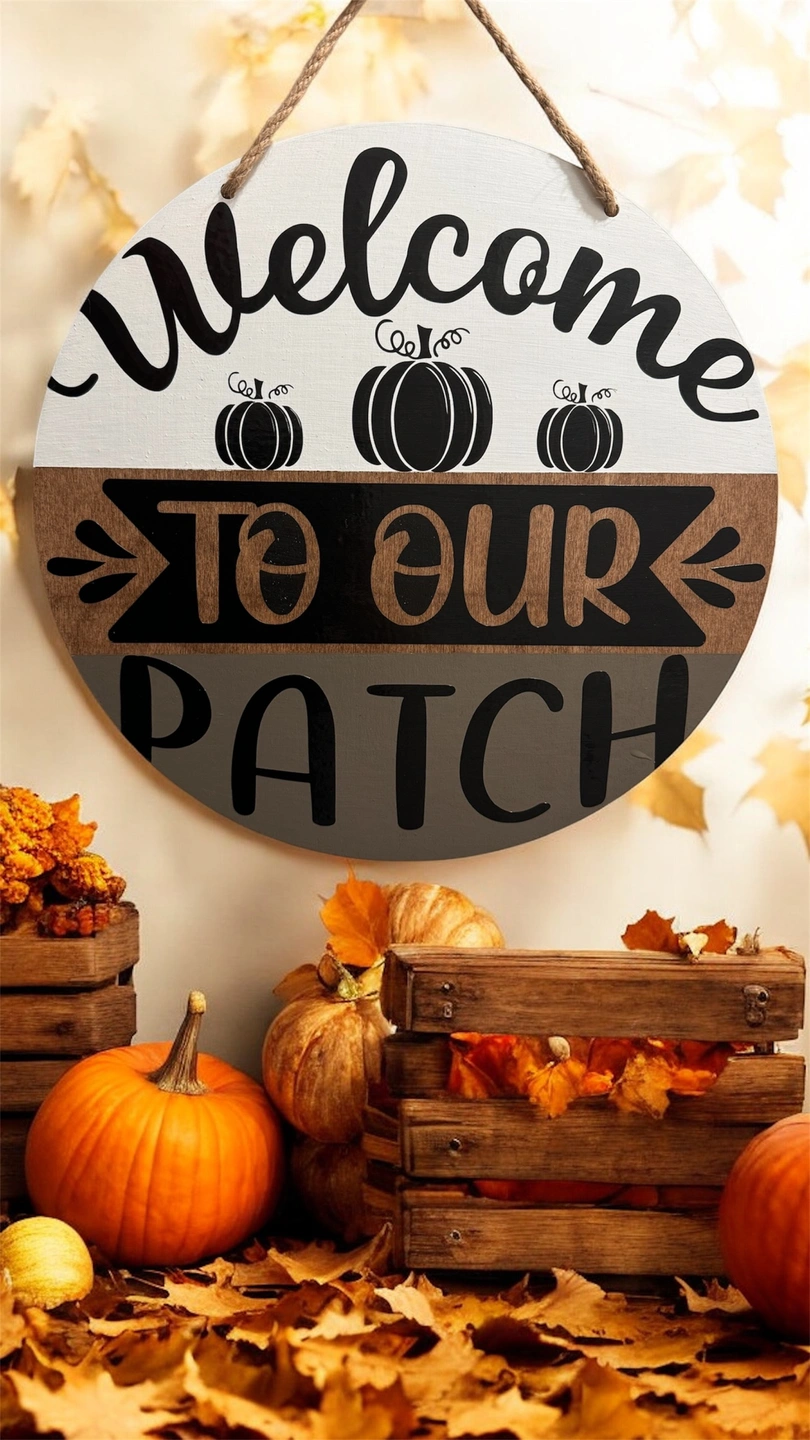 2 decorative signs featuring fall and Halloween themes. All are made of wood and have a rustic aesthetic. Perfect for home decor.