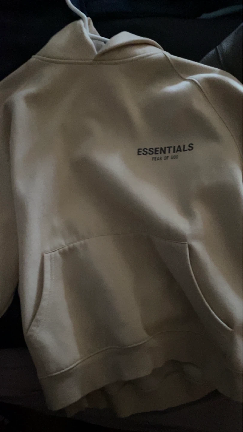 ESSENTIALS Fear of God hoodie in a light beige colour. Size small. Made from a soft cotton blend.