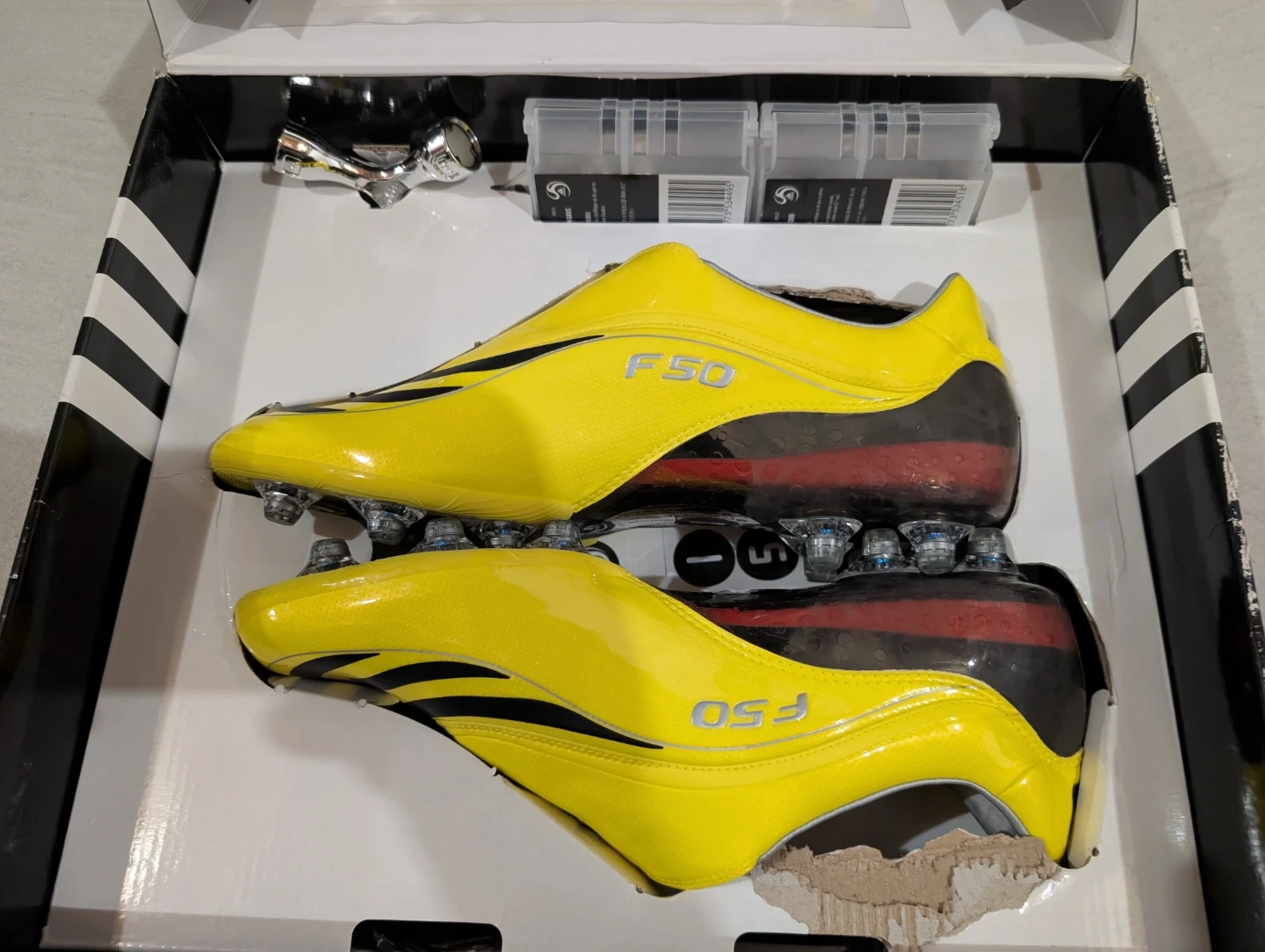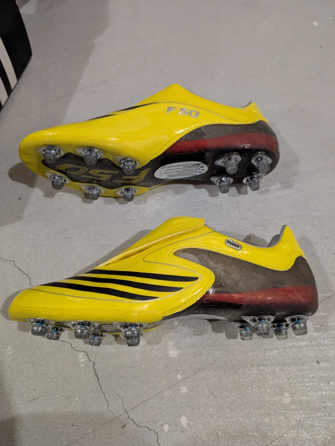 Brand new, never worn, Adidas F50 soccer cleats. Size 12. Includes original box and accessories Cleats are interchangeable to the field/turf.