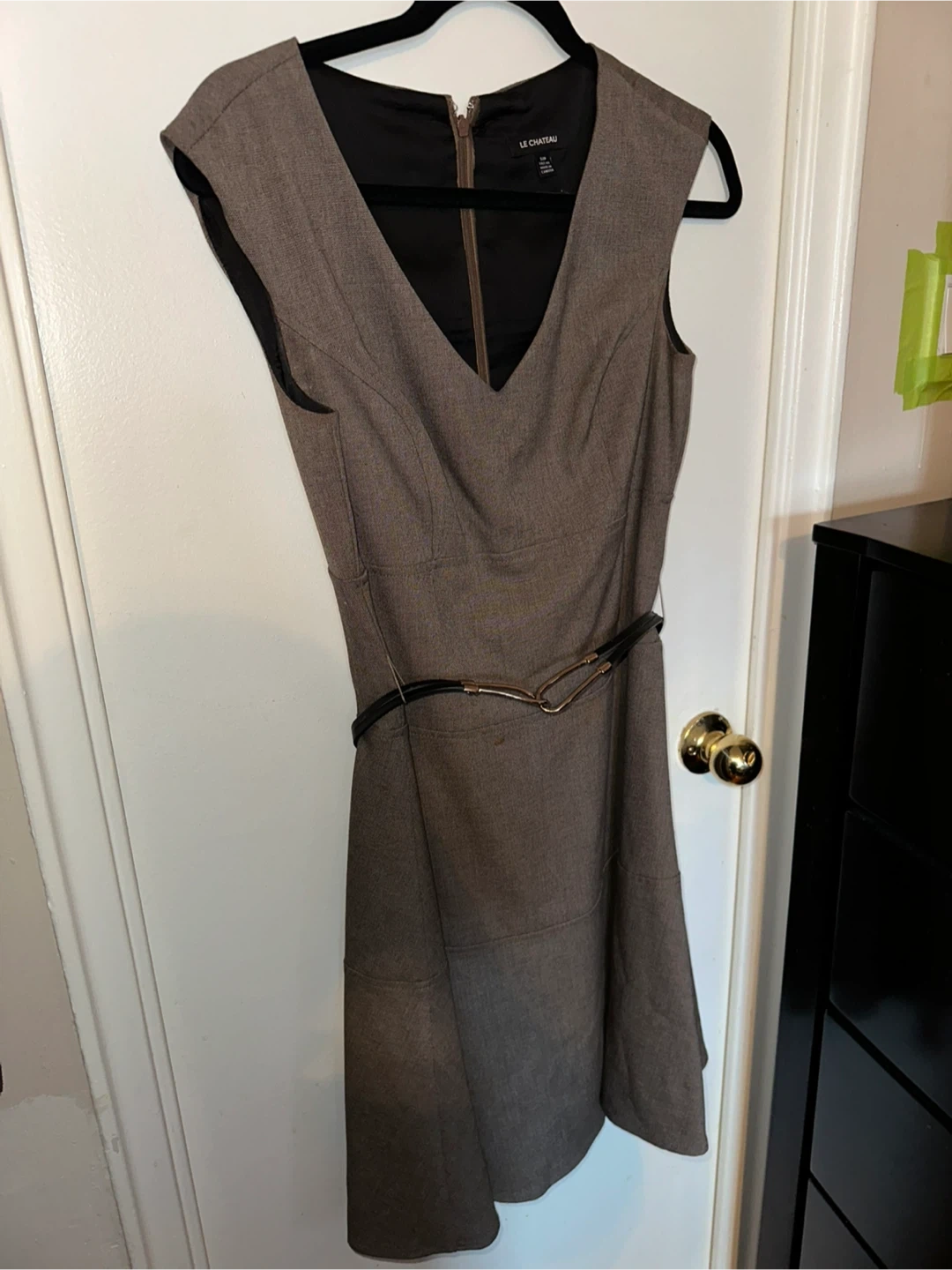 This is a LE CHATEAU elegant grey dress with a flared skirt. It no longer fits me, but has only been worn a few times.