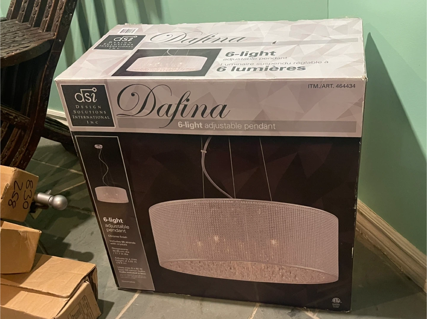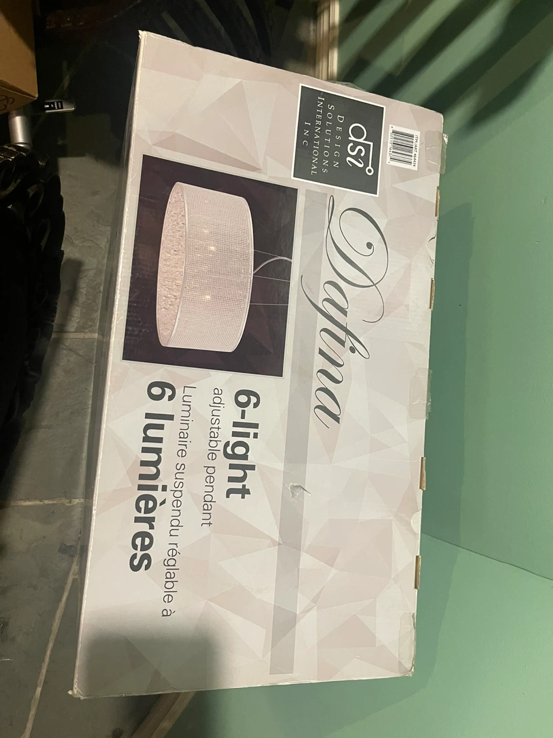 10Selling a Dafina 6-light adjustable pendant by DSI Design Solutions. It's in excellent condition and comes in the original box. This stylish pendant will add a touch of elegance to any room!