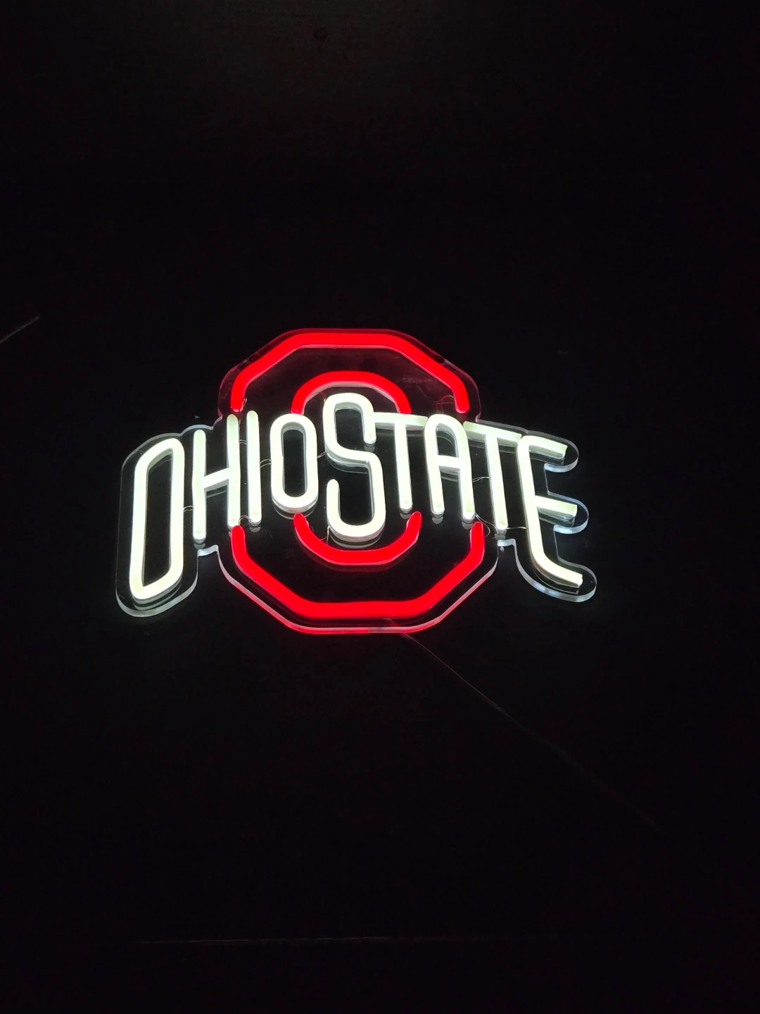 Show your Buckeyes spirit with this vibrant neon sign! It features the classic Ohio State logo in bright red and white. Perfect for a game room or fan cave!