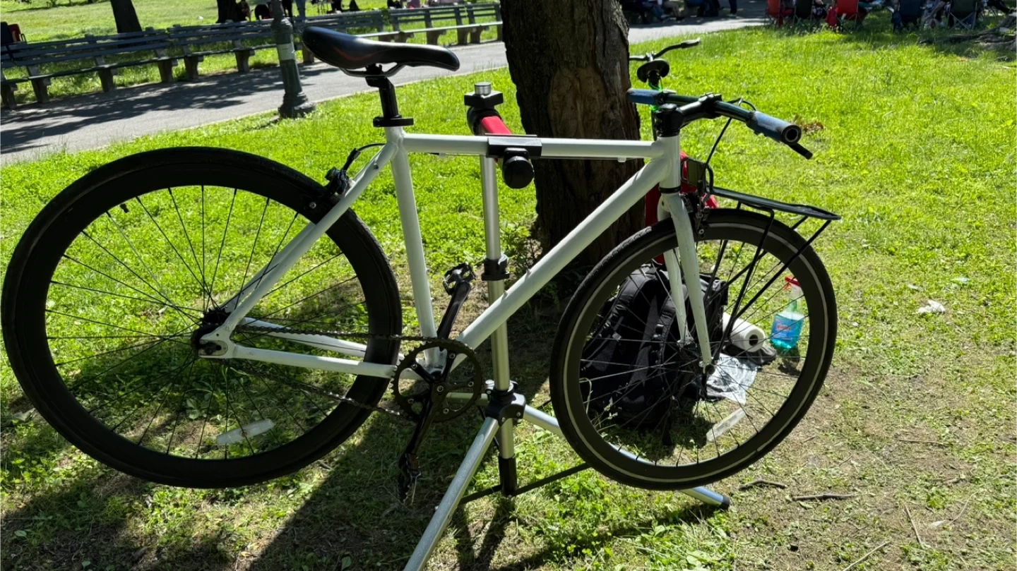 White Single-Speed Commuter Bicycle with Rack
