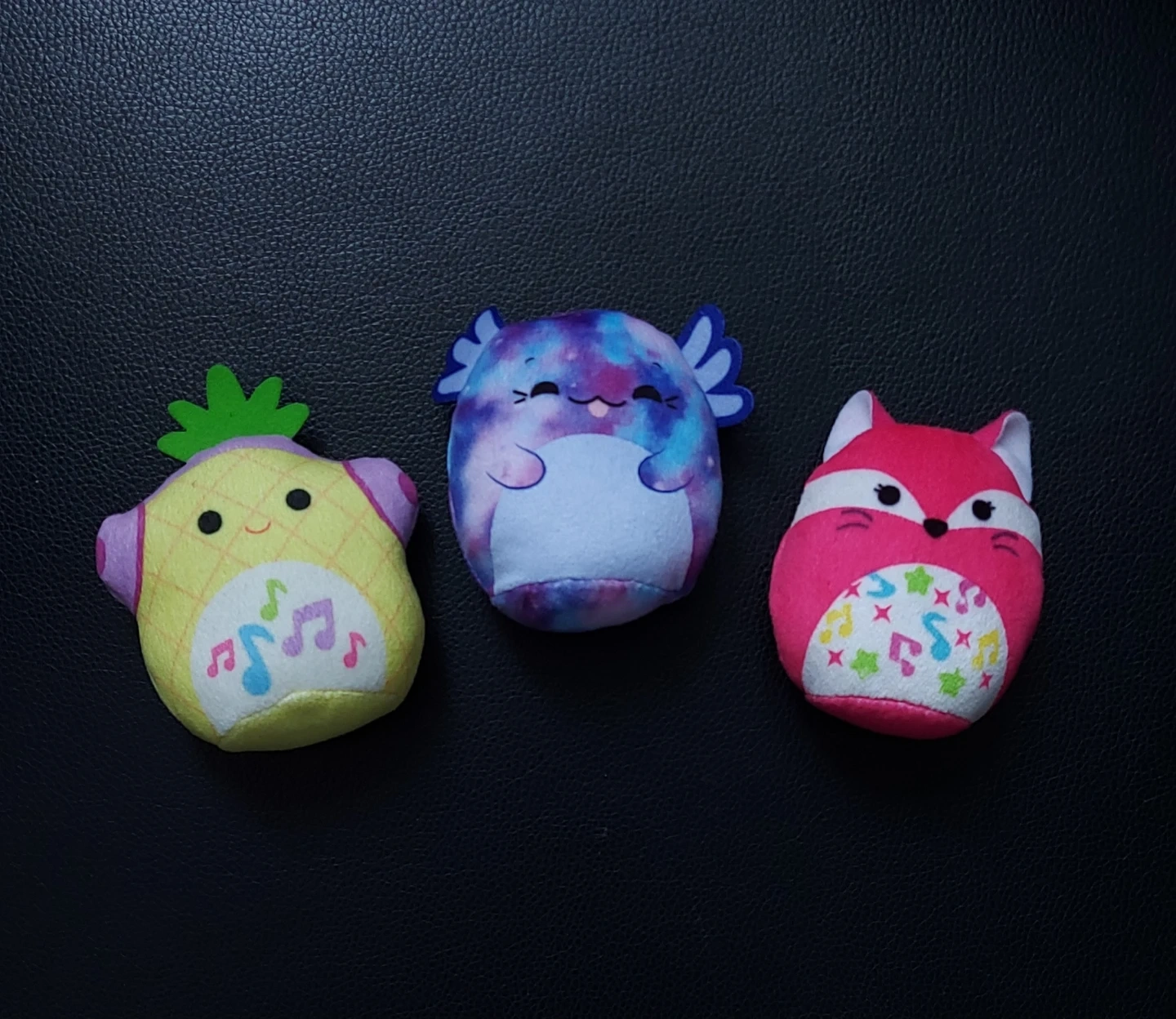 🆕 Set of three Squishmallows plush toys. Includes a pineapple, a galaxy axolotl, and a pink fox design. Soft and huggable. Sizes are between 8 to 10 centimetres.