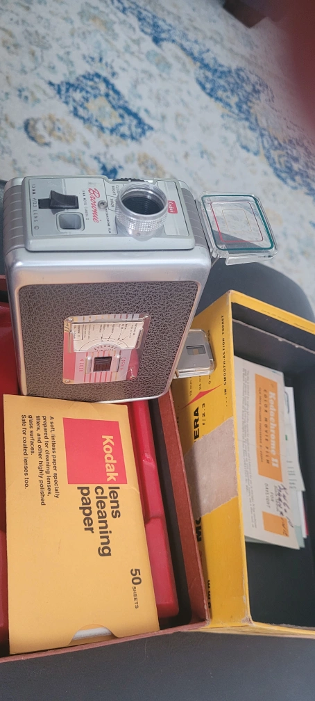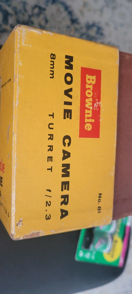 Vintage Eastman Kodak Brownie 8mm Movie Camera in original box. Includes original cleaning paper. The box is in good condition with minor wear.
