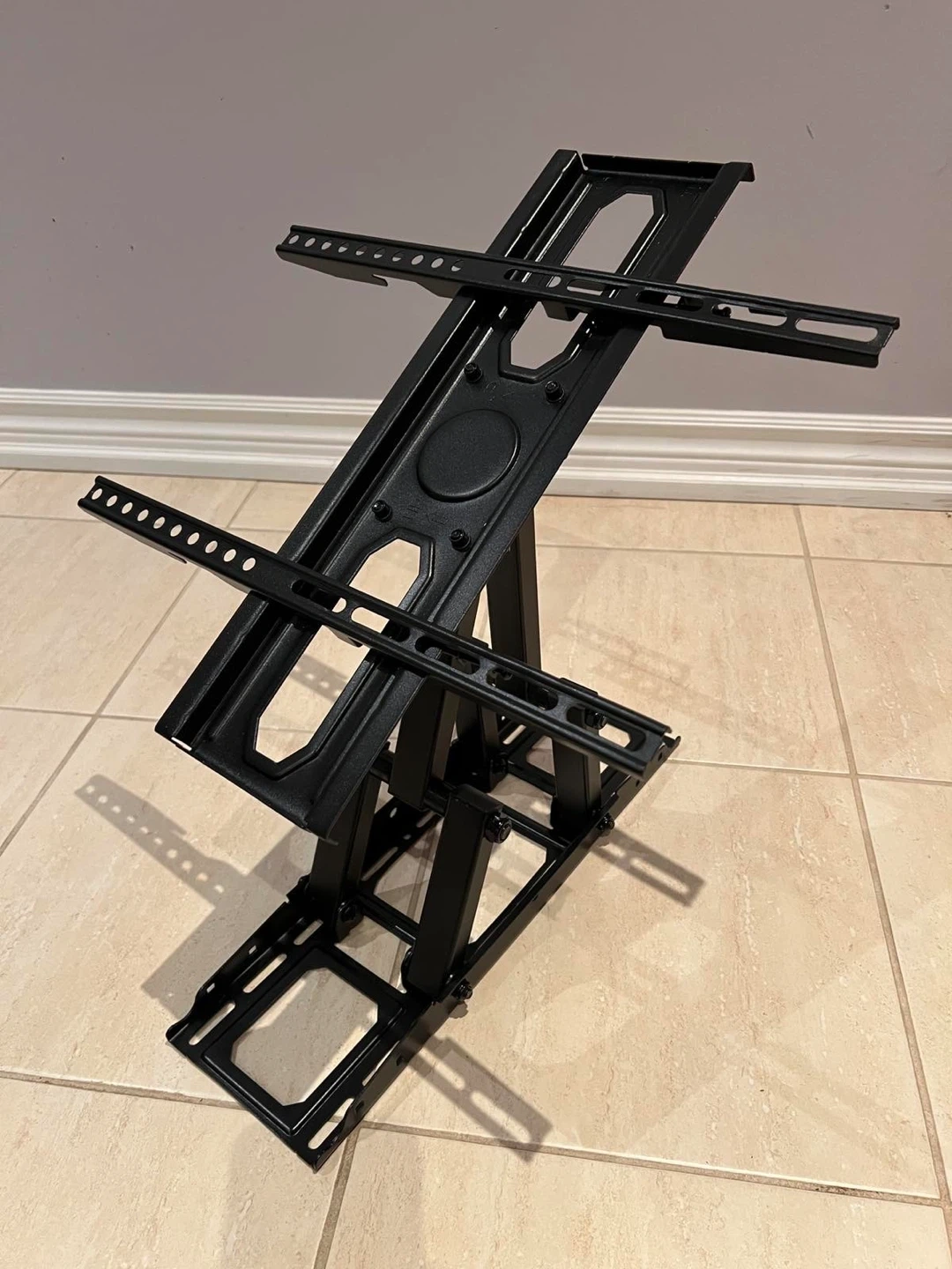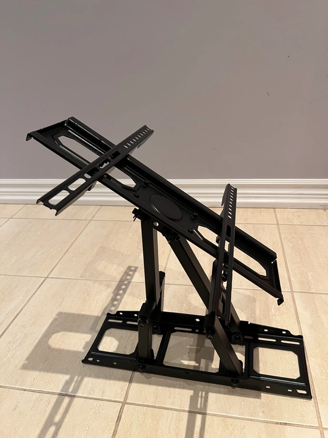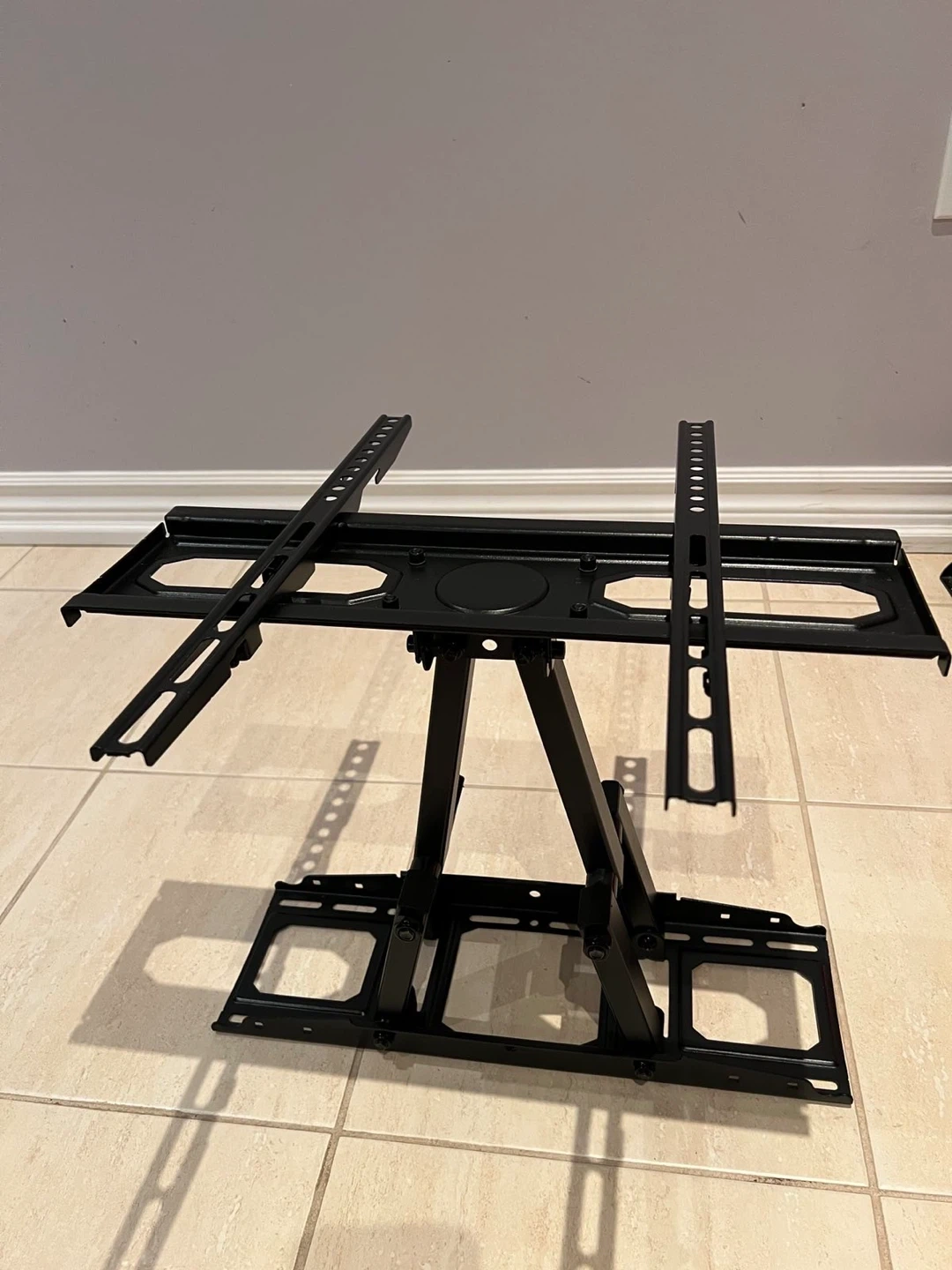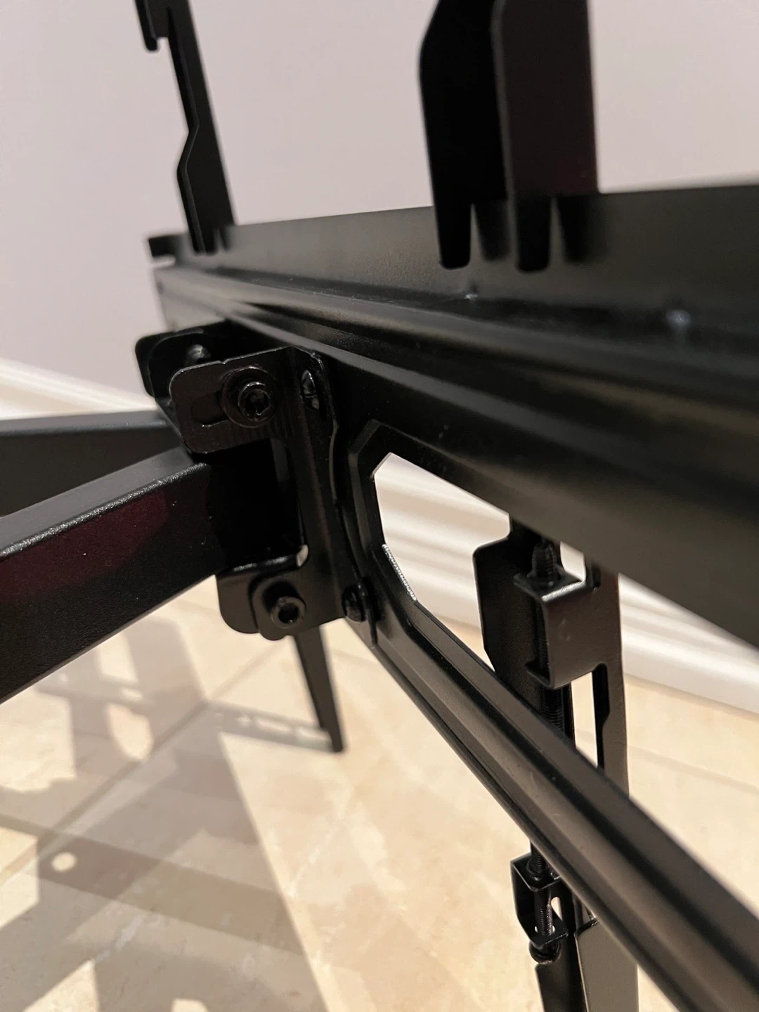 This black TV wall mount offers swivel and tilt functionality. It's made of durable metal construction. Comes with necessary hardware for installation.