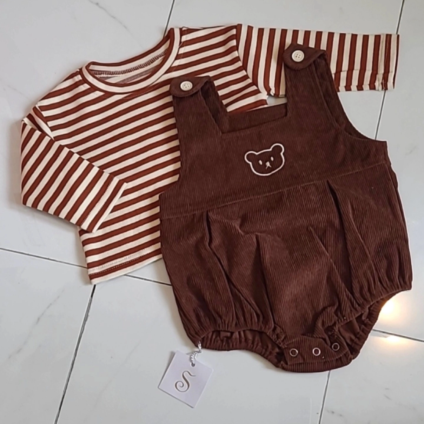 Brown Corduroy Baby Jumpsuit and Striped Shirt