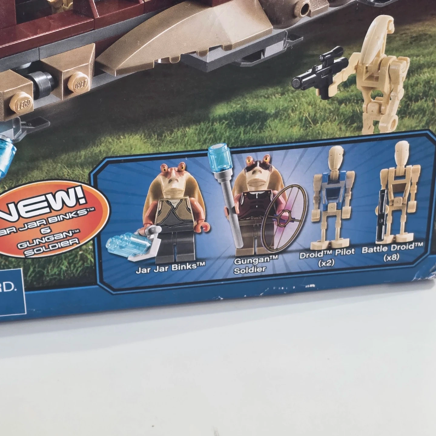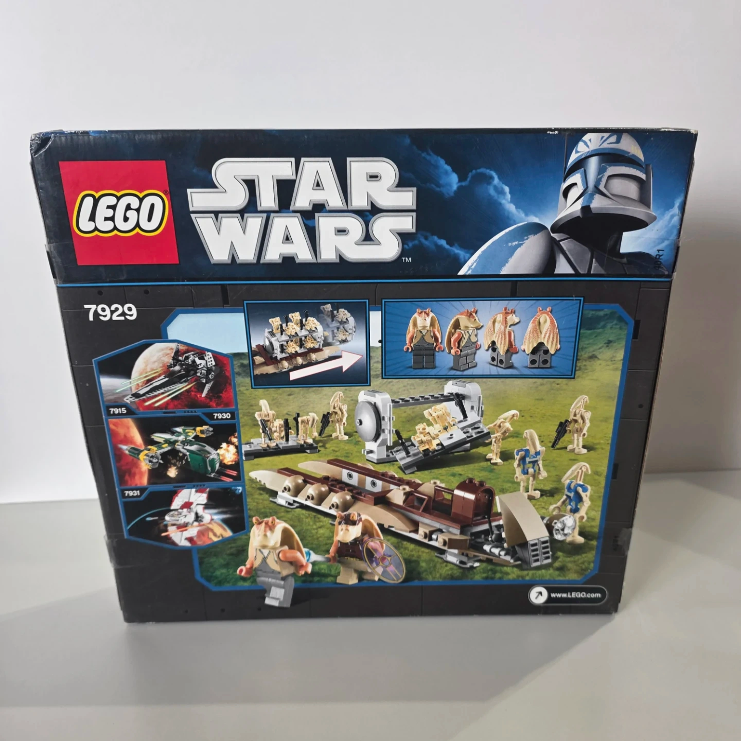 This LEGO set is the 7929 The Battle of Naboo from the Star Wars line. It includes 241 pieces. Build Jar Jar Binks, a Gungan Soldier, and Battle Droids for an epic Star Wars scene!