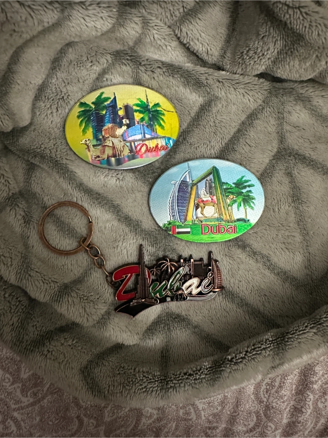 10Selling a few souvenir items from Dubai! There are two magnets and one keychain, all in great condition. Perfect for adding a touch of travel to your fridge or keys