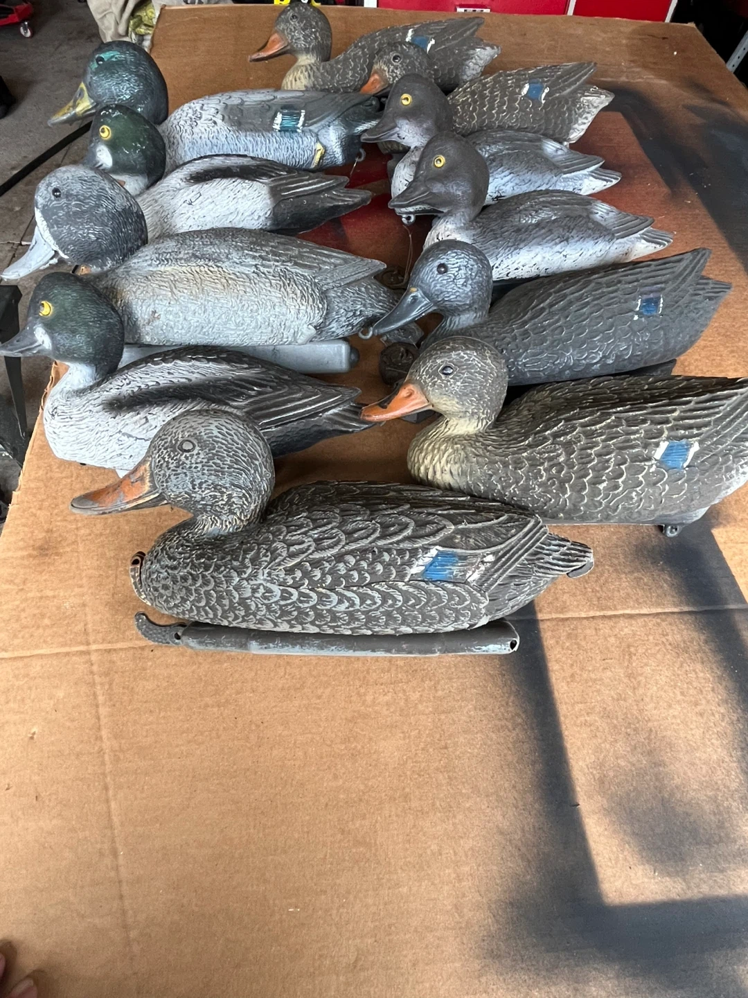 10Selling a set of duck decoys, perfect for hunting season! They are in good condition and ready to use. Great for attracting ducks during your next hunting trip five weights included