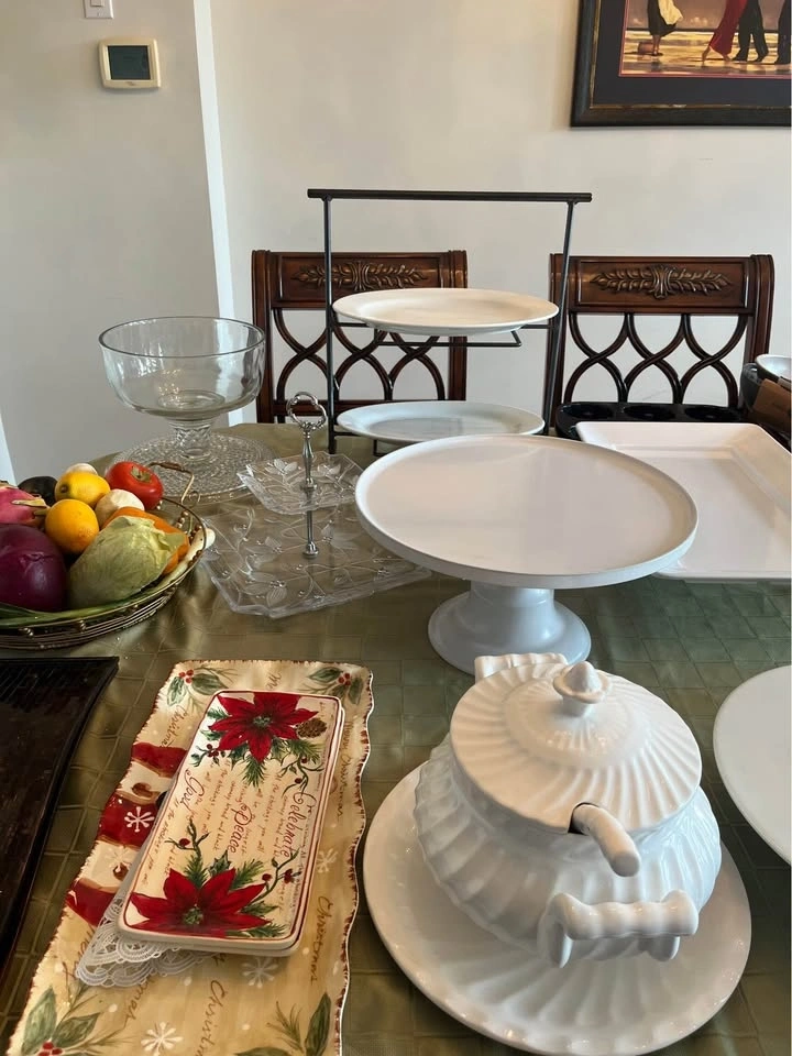 I have many different plates, platters, and stands available. If you're interested in anything, please send me a message and we can discuss a reasonable price!